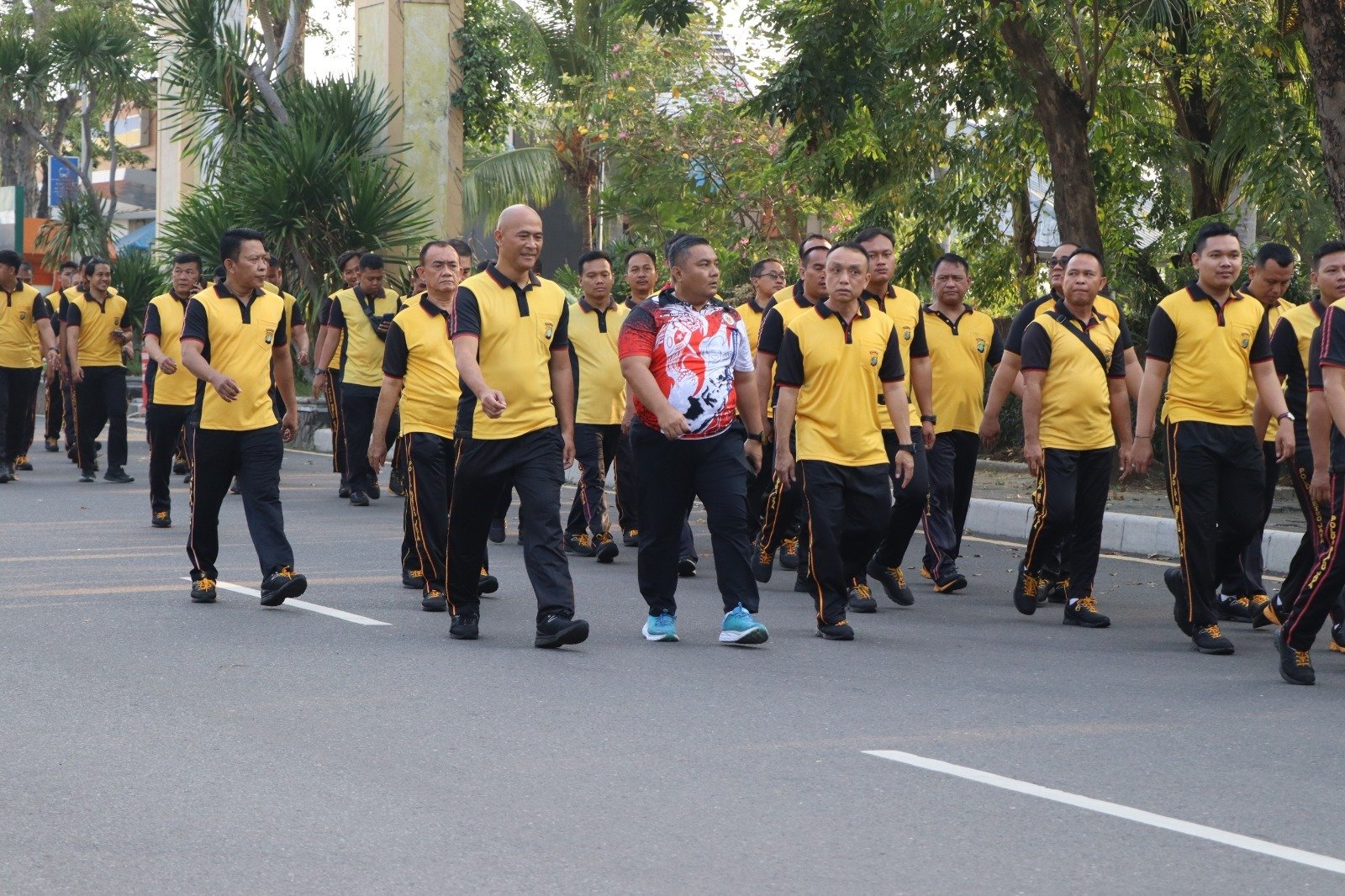 Kegiatan dimulai dengan jalan santai dari halaman kantor menuju Ecopark Ancol. Suasana kebersamaan dan semangat kebugaran tampak jelas saat Kapolres dan para anggota berjalan bersama Bhayangkari, menikmati pagi yang cerah di kawasan Ancol.