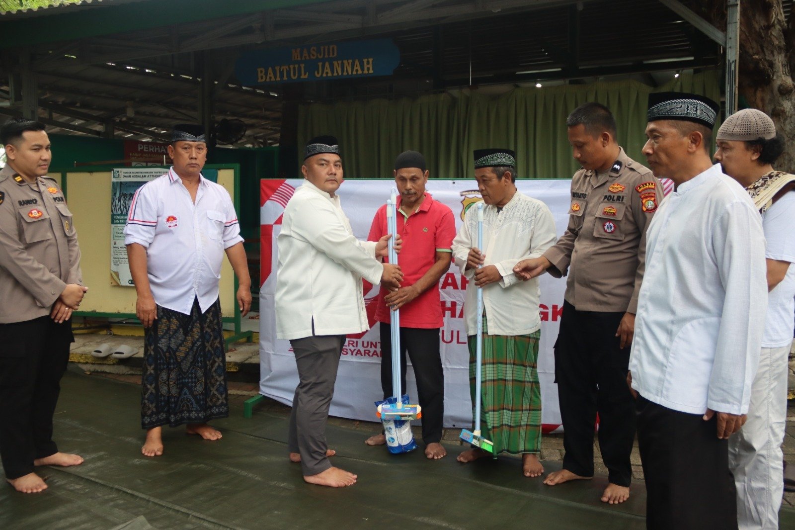 Kegiatan dilaksanakan selepas Sholat Jumat dan diisi dengan penyerahan bantuan berupa alat kebersihan masjid serta perlengkapan ibadah kepada marbot Masjid Baitul Jannah. Bantuan ini diberikan sebagai bentuk kepedulian Polri terhadap kebersihan dan kenyamanan rumah ibadah.