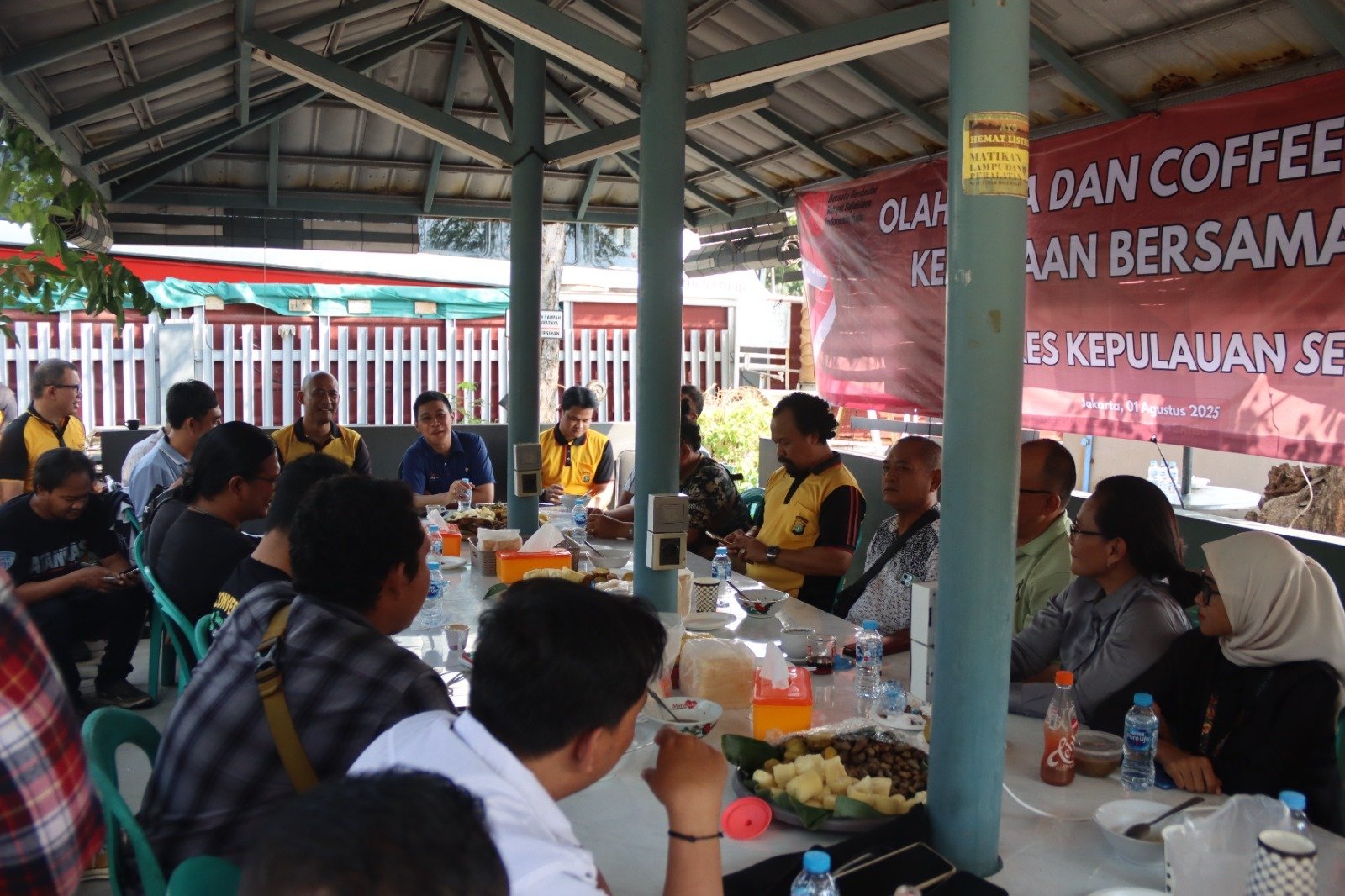 refubliknews.com, || Jakarta – Jumat, 01 Agustus 2025. Usai melaksanakan olahraga bersama, Kapolres Kepulauan Seribu AKBP Argadija Putra, S.I.K., M.Si., menggelar kegiatan Coffee Morning dan Kemitraan bersama para wartawan di Saung Kantor Polres Kepulauan Seribu, Marina Ancol, Jakarta. Acara ini bertujuan mempererat hubungan antara institusi kepolisian dengan insan media dalam menyampaikan informasi kepada masyarakat.