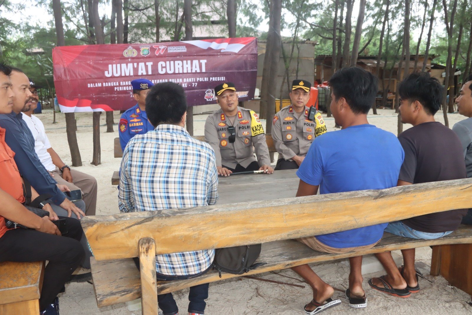 Jakarta – Kapolres Kepulauan Seribu AKBP Jarot Sungkowo, S.H., S.I.K., beserta jajaran Pejabat Utama Polres mengadakan kegiatan Jumat Curhat di Pulau Macan, Kepulauan Seribu Utara pada Jumat (03/05/2023). Kegiatan ini diadakan dengan tujuan untuk berdialog, mendengarkan, mencatat, dan mencari solusi terhadap permasalahan kamtibmas yang dihadapi oleh masyarakat.