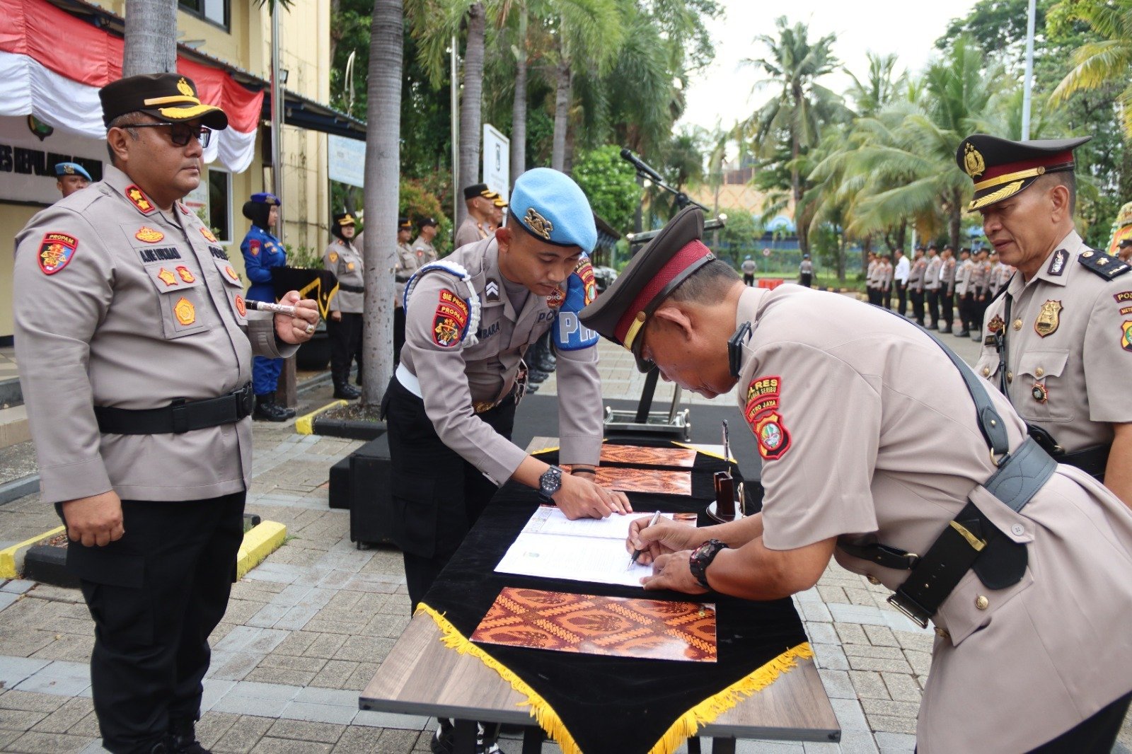 Pada momen tersebut, pejabat yang baru juga melakukan penandatanganan naskah berita acara serah terima jabatan, kontrak kinerja, serta pakta integritas. Penandatanganan ini menjadi simbol komitmen para pejabat baru dalam menjalankan tugas dan tanggung jawab di lingkungan Polres Kepulauan Seribu.