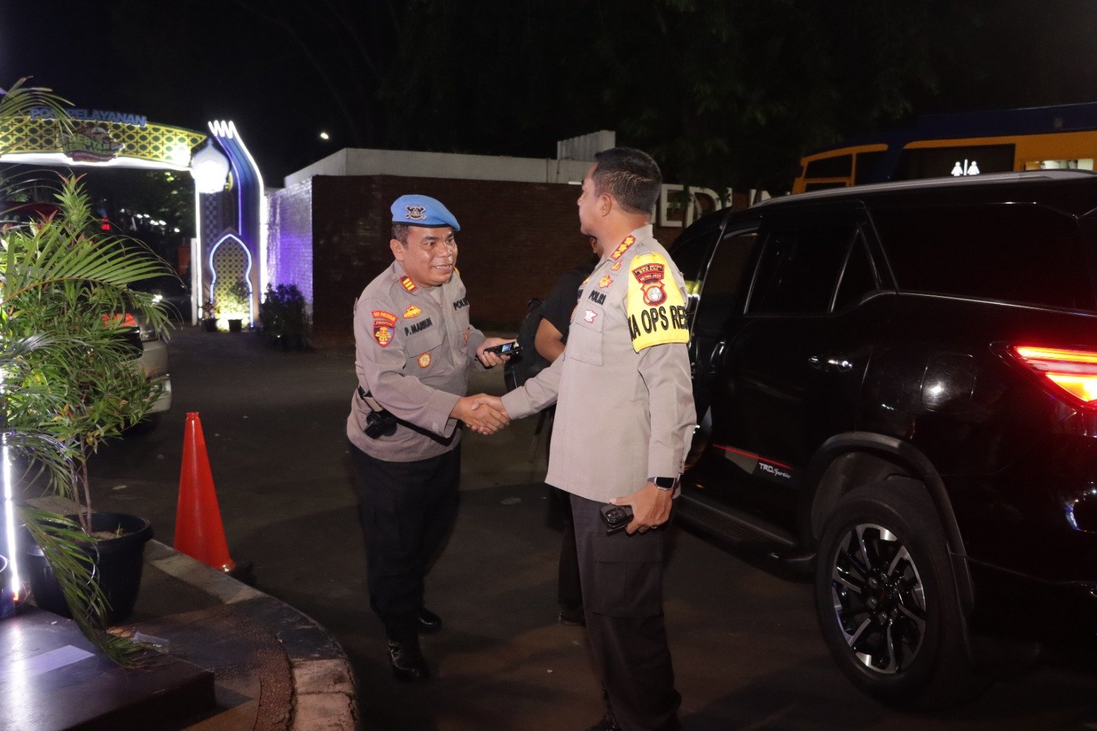 Bekasi – Kapolres Metro Bekasi Kombes Pol. Twedi Aditya Bennyahdi bersama Pejabat Utama Polres Metro Bekasi melakukan pengecekan dan pengawasan arus balik Lebaran 2024 di Pos Pelayanan Gedung Juang Tambun, Jalan Sultan Hasanudin, Tambun Selatan, Kabupaten Bekasi. Minggu (14/4/2024) dini hari.