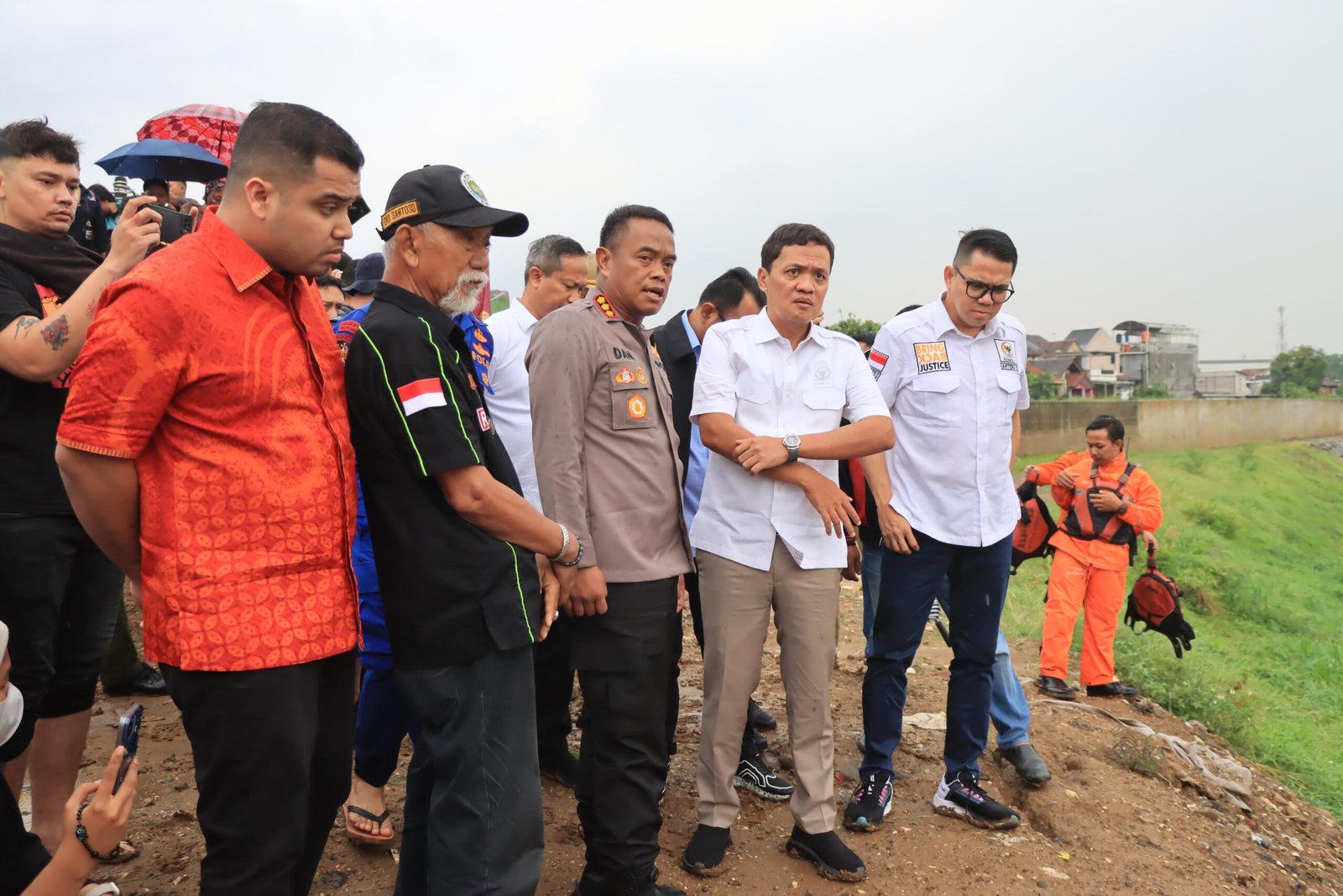 Hujan sempat mengguyur lokasi saat kedatangan rombongan Komisi III DPR. Ketika hujan mulai reda, jajaran Komisi III ini kemudian mengecek lokasi Kali Bekasi tempat penemuan Jenazah.