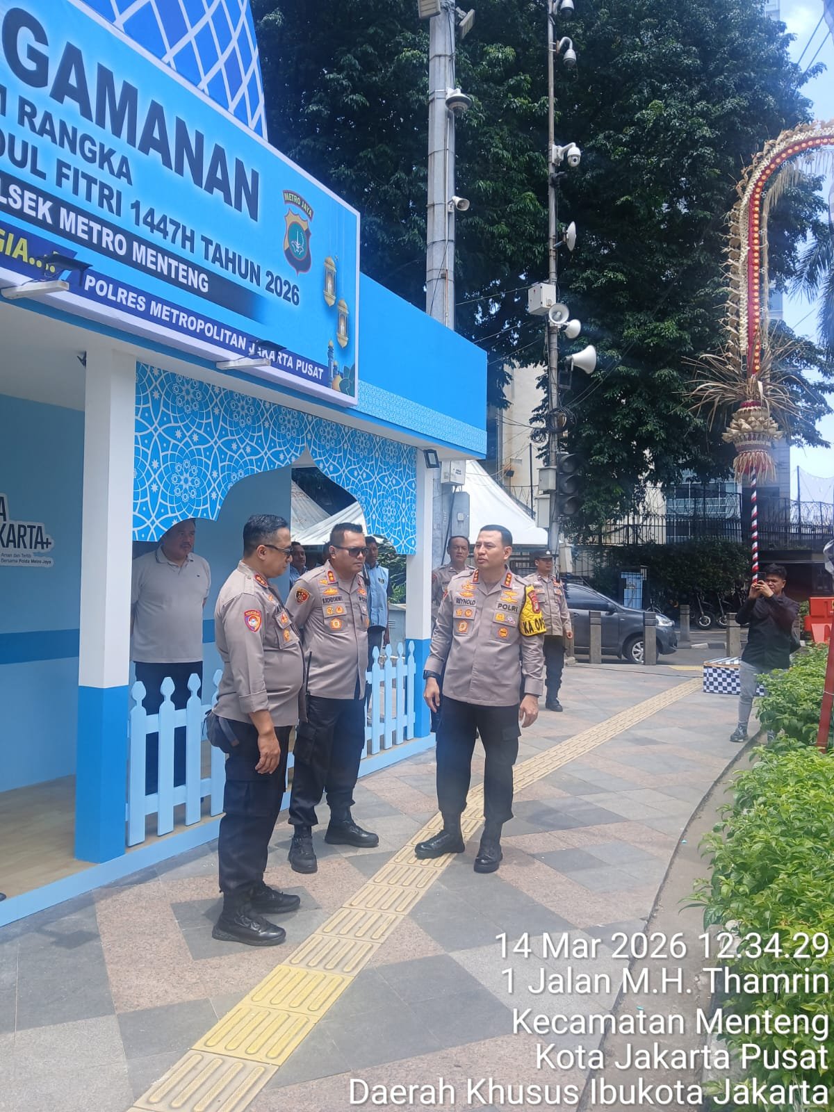 Jakarta Pusat – Dalam rangka memastikan kesiapan pengamanan arus mudik dan aktivitas masyarakat menjelang Hari Raya Idul Fitri, Kapolres Metro Jakarta Pusat Kombes Pol. Dr. Reynold E.P. Hutagalung melaksanakan pengecekan langsung kesiapan Pos Pengamanan (Pos Pam) Operasi Ketupat Jaya 2026 di kawasan Bundaran HI, Jalan MH Thamrin, Menteng, Jakarta Pusat. Sabtu (14/3/2026)