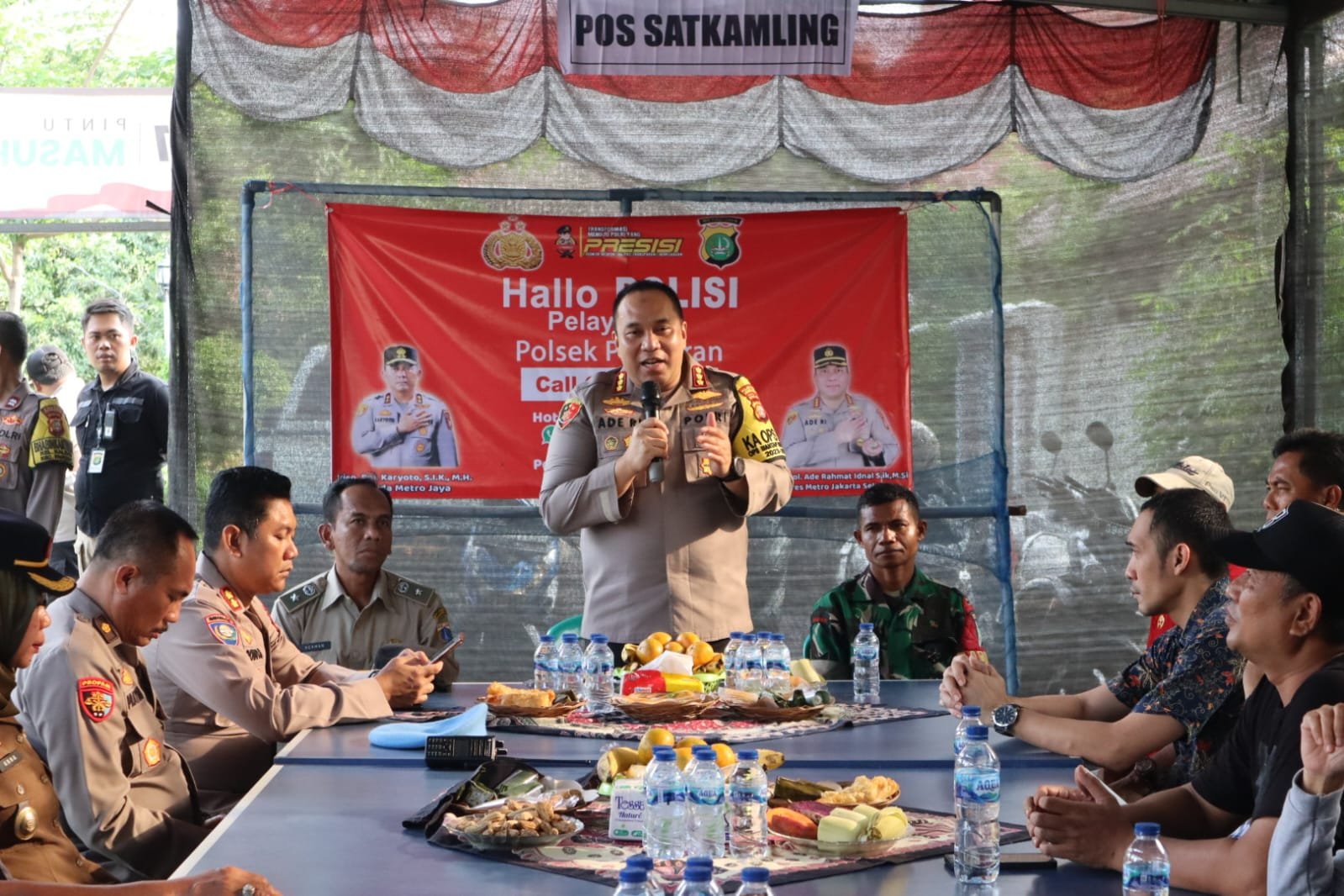 Untuk menghadapi kedatangan bulan Suci Ramadhan Tahun 2024 antisipasi meningkatnya trend Gangguan kamtibmas aksi kejahatan pencurian dan tawuran di wilayah Kecamatan Pancoran Jakarta Selatan Kapolres Metro Jakarta Selatan Kombes Pol. Ade Rahmat Ignal SIK, MSI dialog bersama warga Kelurahan Kalibata di Poskamling RW.07 dengan merangkul Mitra Pokdarkamtibmas Bhayangkara ikut menjaga kamtibmas di lingkungan yang terdiri dari Ketua RT dan ketua RW melibatkan Karang Taruna.