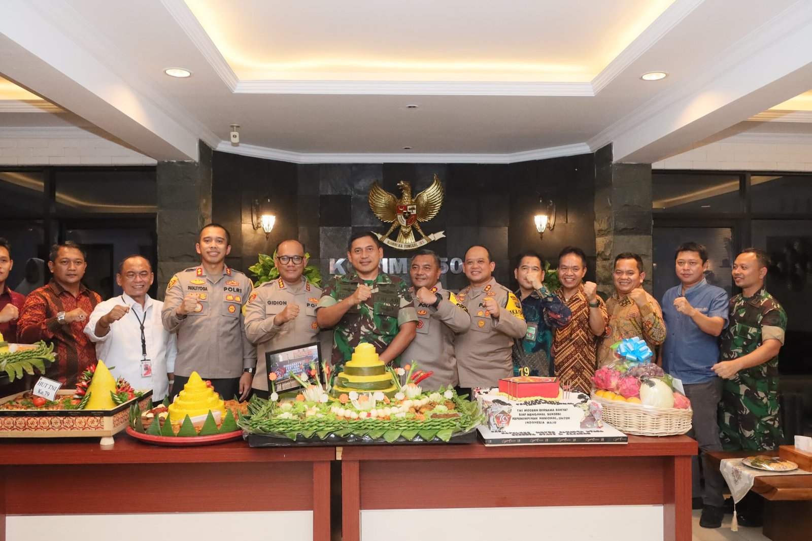 Dalam suasana kebersamaan, Kapolres Metro Jakarta Utara Kombes Pol Gidion Arif Setyawan memberikan ucapan ” Selamat untuk Dandim dan jajarannya untuk hari yang bahagia besok 5 Oktober 2024 HUT TNI ke-79.”
