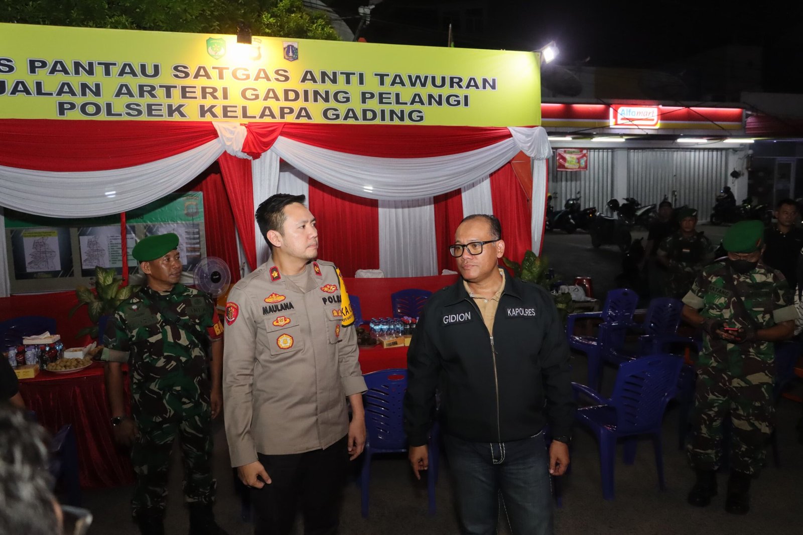 Jakarta, – Kapolres Metro Jakarta Utara Kombes Pol. Gidion Arif Setyawan, cek Pos Pantau Satgas Anti Tawuran dalam rangka kegiatan Cipta Situasi Kamtibmas di Jalan Arteri Gading Pelangi Pegangsaan Dua Kec. Kelapa Gading Jakarta Utara.