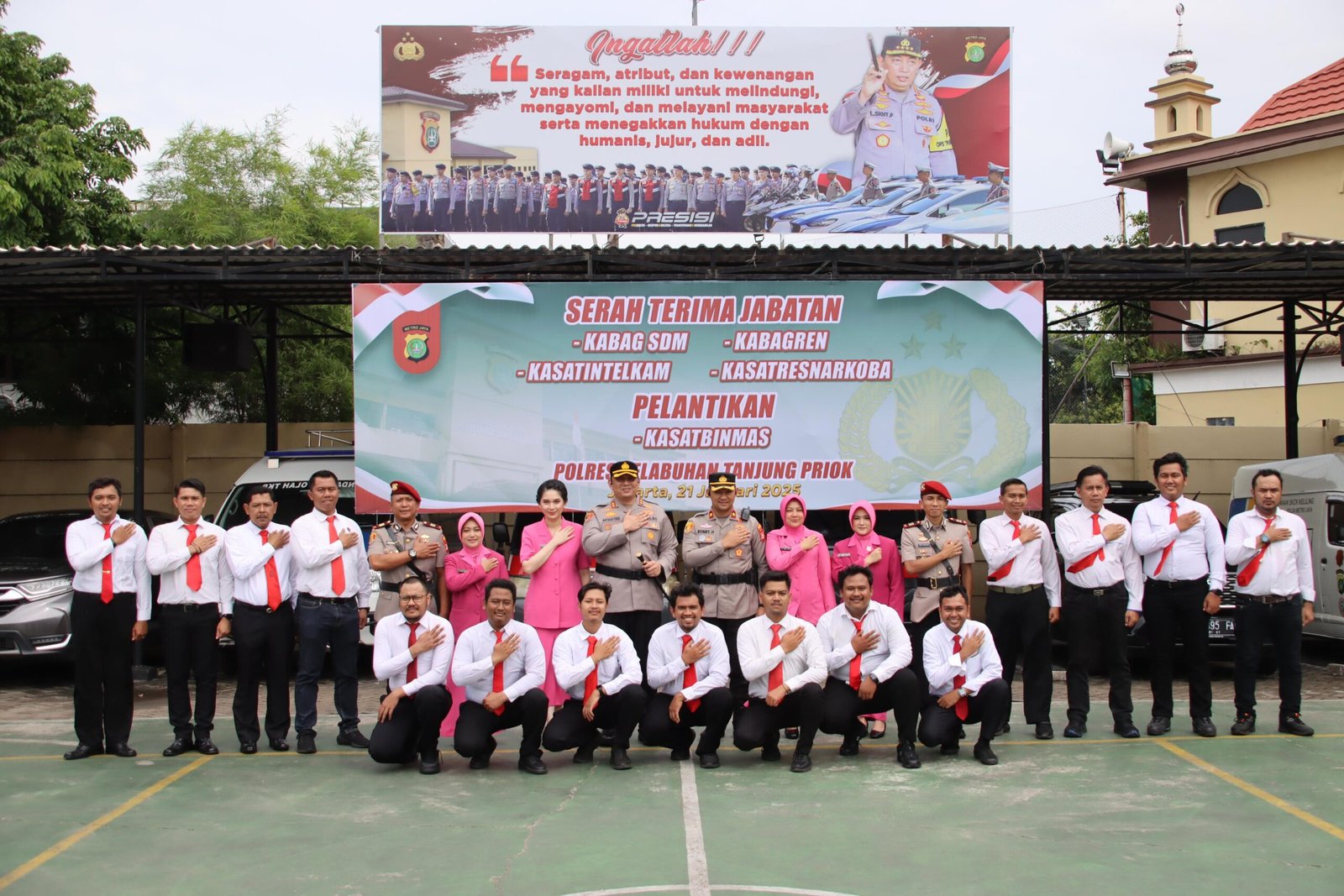 refubliknews.com,- Jakarta – Kapolres Pelabuhan Tanjung Priok AKBP Dr. Martuasah H. Tobing, S.I.K., M.H., memimpin serah terima jabatan (Sertijab) Kabag SDM, Kabagren, Kasatreskrim, Kasatresnarkoba, Kasatintelkam dan Pelantikan Kasatbinmas Polres Pelabuhan Tanjung Priok bertempat di Lapangan Presisi Polres Pelabuhan Tanjung Priok, Selasa (21/01/2025).