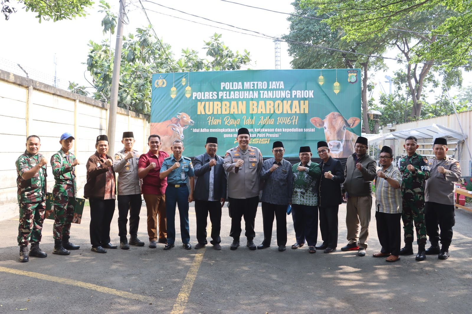 refubliknews.com, || Jakarta – Kapolres Pelabuhan Tanjung Priok AKBP Dr. Martuasah H. Tobing, S.I.K., M.H. menyerahkan hewan kurban berupa sapi kepada Tokoh Masyarakat, Tokoh Agama, TNI, DKM Masjid, dan Organisasi Masyarakat di Halaman Parkir Presisi Polres Pelabuhan Tanjung Priok dalam rangka hari raya Idul Adha 1446 Hijriah.