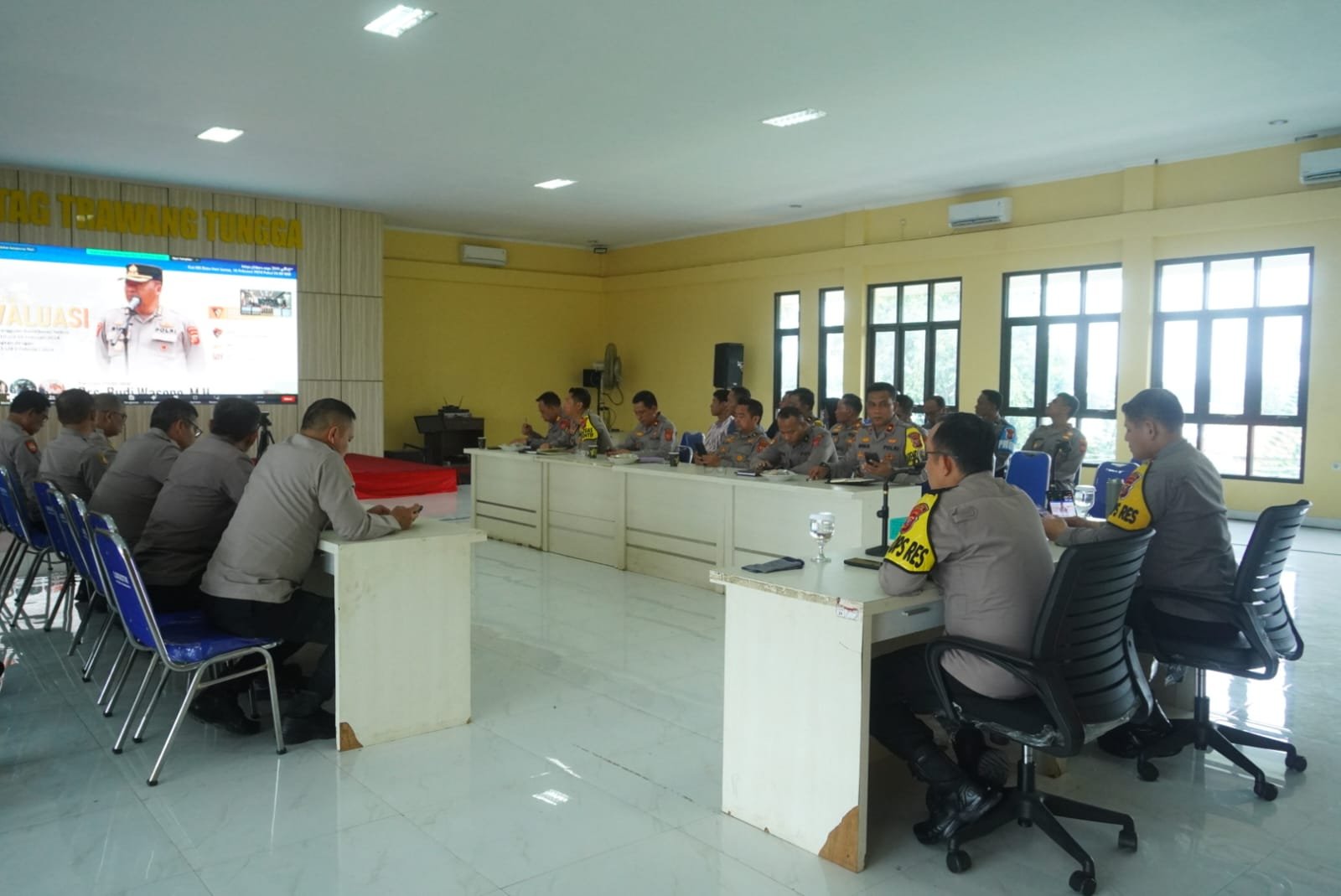 Kegiatan Analisa dan Evaluasi (Anev) terhadap kinerja jajaran ini dilaksanakan di secara virtual di Aula Tatag Trawang Tungga, Mapolres Purwakarta.