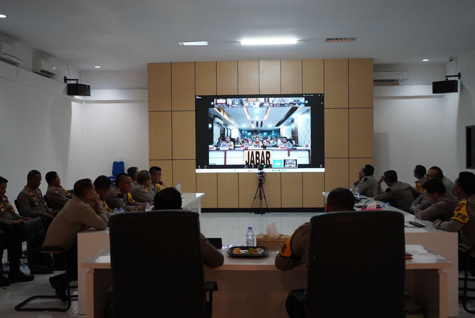 refubliknews.com, – Purwakarta – Kapolres Purwakarta, AKBP Lilik Ardiansyah didampingi Wakapolres, Kompol Ricky Ardipratama serta pejabat utama Polres Purwakarta ikuti video conference (vicon) arahan Kapolri, Jenderal Polisi Listyo Sigit Prabowo, di Aula Persisi Mapolres Purwakarta, Pada Senin, 28 Oktober 2024, sore.