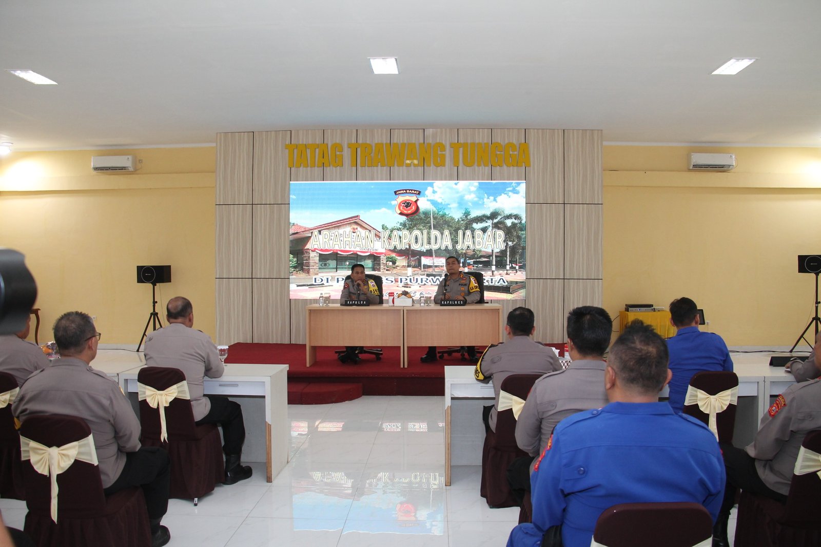 Kegiatan yang di pusatkan di Aula Tatag Trawang Tungga itu dalam rangka tatap muka dan arahan Kapolda Jabar terhadap personel Polres Purwakarta terkait perkembangan situasi kamtibmas.