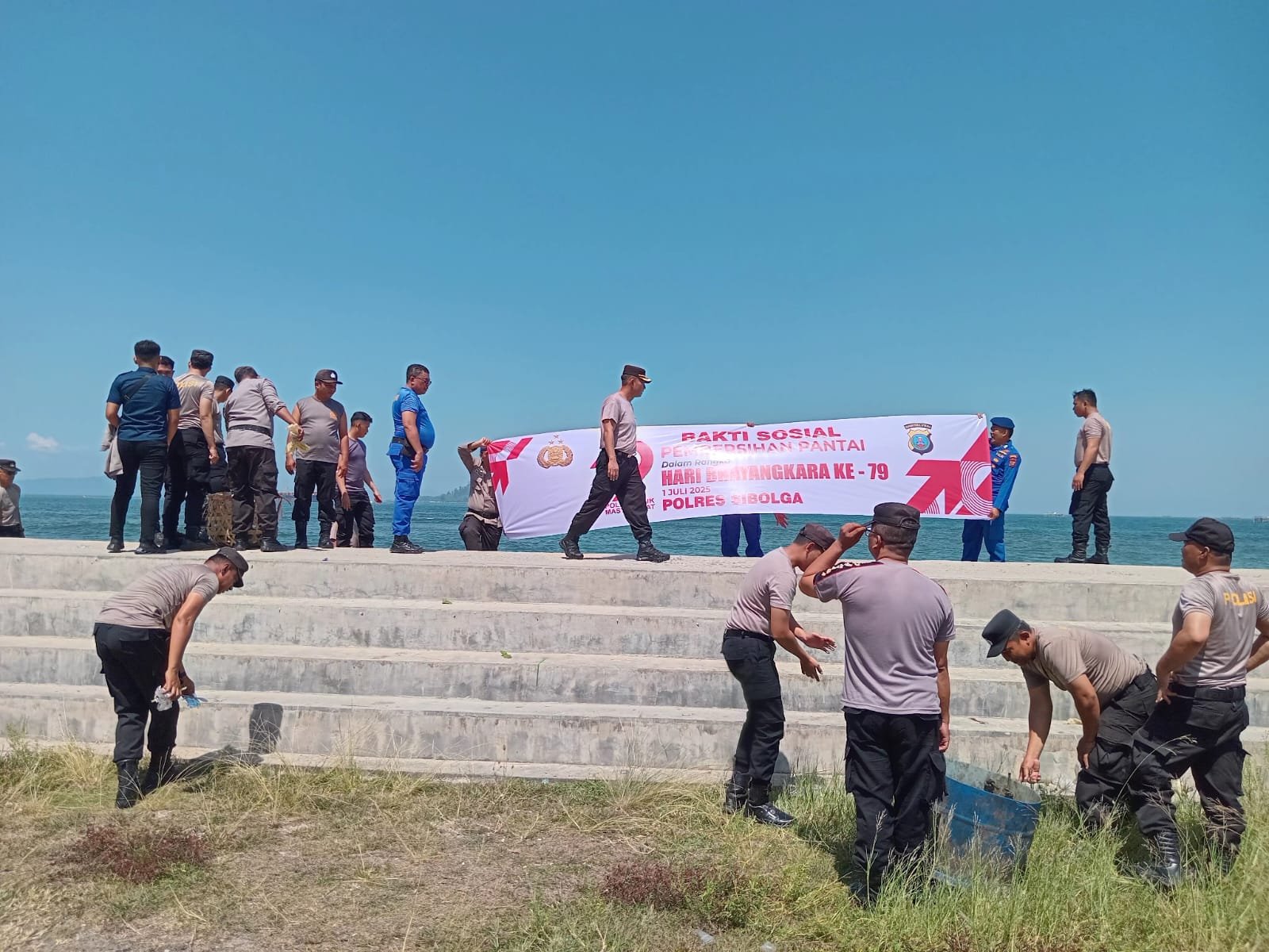 SIBOLGA – Pada hari Senin, 30 Juni 2025, pukul 11.00 WIB, Kapolres Sibolga AKBP Eddy Inganta, SH, SIK, MH, bersama Personil Polres Sibolga dan Pengurus Bhayangkari Cabang Sibolga, dalam Rangka Hari Bhayangkara Ke-79 Tahun 2025, melaksanakan Bakti Sosial “Bersih Pantai” yang berlangsung di Pelabuhan Lama Sibolga Jalan Com. Yos Sudarso Kelurahan Kota Baringin Kecamatan Sibolga Kota, Kota Sibolga. Kegiatan ini dilaksanakan merupakan bentuk kepedulian Polres Sibolga dan Bhayangkari Cabang Sibolga menjaga kebersihan lingkungan hidup khususnya Objek Wisata Pantai yang berada di Wilayah Kota Sibolga, selain itu bertujuan untuk meningkatkan Kesadaran Masyarakat mengenai pentingnya menjaga kebersihan dan kelestarian laut.