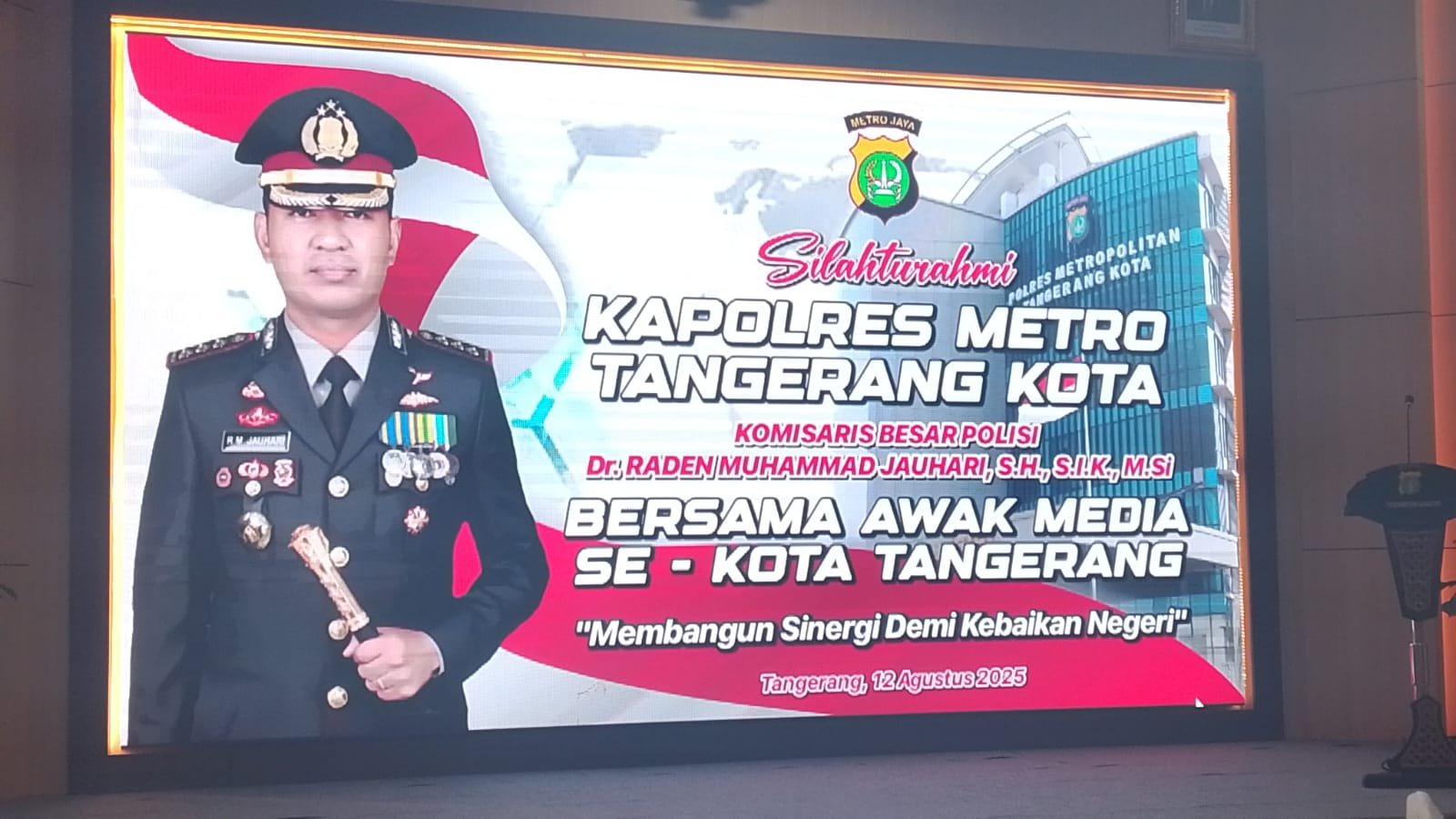 refubliknews.com,- Dalam dinamika demokrasi modern, relasi antara institusi penegak Hukum dan media massa bukan sekadar hubungan pragmatis antara pemberi dan penyebar informasi, melainkan telah berkembang menjadi mitra strategis dalam membentuk persepsi Publik, memperkuat akuntabilitas institusional, dan menjaga stabilitas sosial. Memahami urgensi relasi ini, Kapolres Metro Tangerang Kota, Komisaris Besar Polisi Dr. Raden Muhammad Jauhari, S.H., SLK, M.S., menginisiasi forum silaturahmi bersama awak media se-Kota Tangerang, yang diselenggarakan di Aula Gedung Mapolres Tangerang Kota, Selasa, 12/08/ 2025.