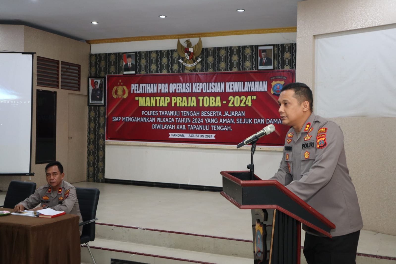 “Dengan ini Pelatihan Pra Operasi Kepolisian Kewilayan Mantap Praja Toba 2024 dalam rangka Pengamanan Pilkada Tahun 2024 di Wilayah Hukum Polres Tapanuli Tengah, resmi dibuka” ucap Kapolres