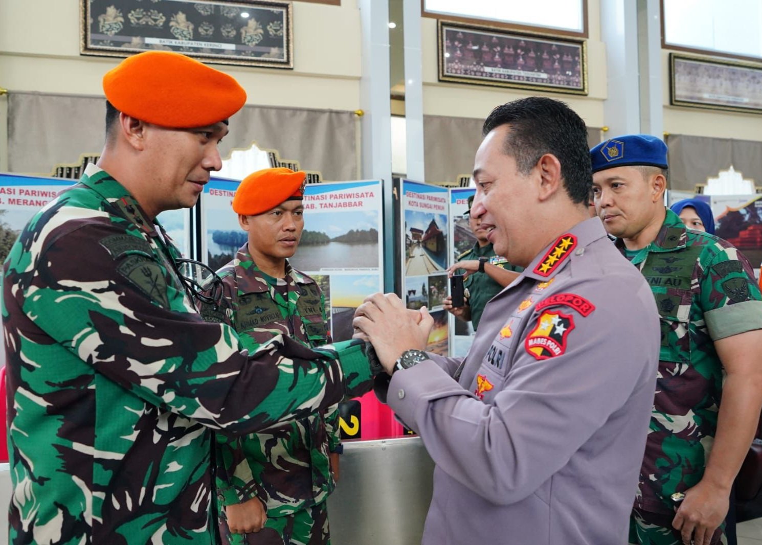 “Salam untuk Pak Panglima TNI, Pak KSAD, Pak KSAU, Pak KSAL, pak Kepala Basarna, BMKG juga dan seluruh masyarakat. Kami keluarga besar Polri menyampaikan apresiasi,” ujar Sigit.