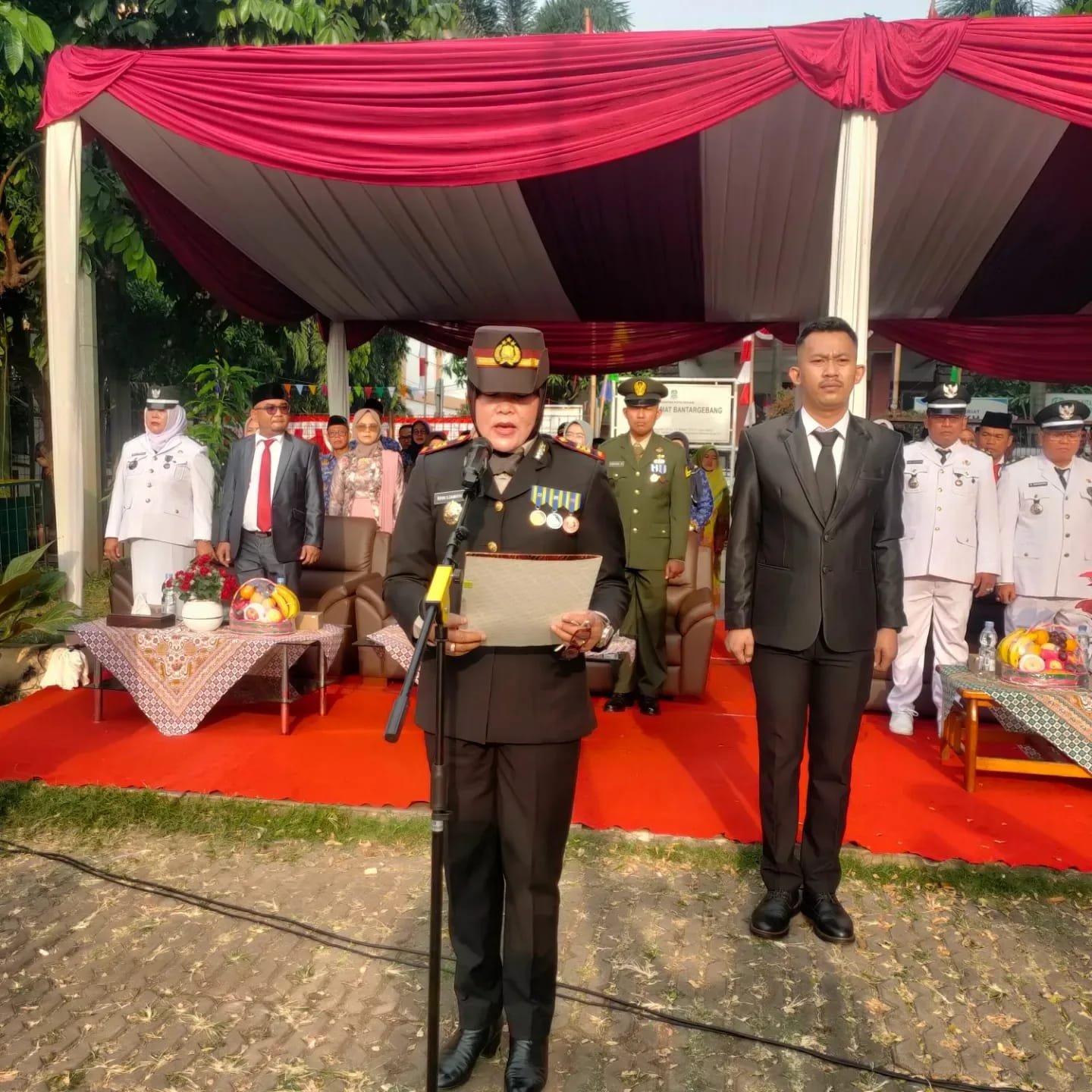 Peran Kapolsek Bantar Gebang dalam Upacara HUT RI, peran aktif Kapolsek Bantar Gebang sebagai pembacakan UUD 1945 dan sebagai simbol kepemimpinan di wilayah tersebut.