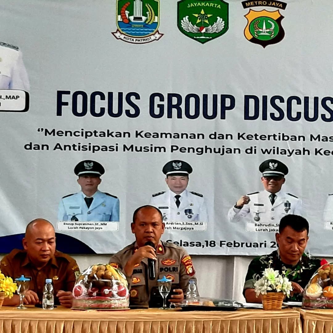 refubliknews.com, – Kota Bekasi, = Kapolsek Bekasi Selatan bersama unsur Forum Komunikasi Pimpinan Kecamatan (Forkopimcam) menghadiri Focus Group Discussion (FGD) bertajuk “Menciptakan Keamanan dan Ketertiban Masyarakat serta Antisipasi Musim Penghujan di Wilayah Kecamatan Bekasi Selatan”. Forum strategis ini berlangsung di Gedung PGRI Kota Bekasi. Selasa, (18/2/2025).