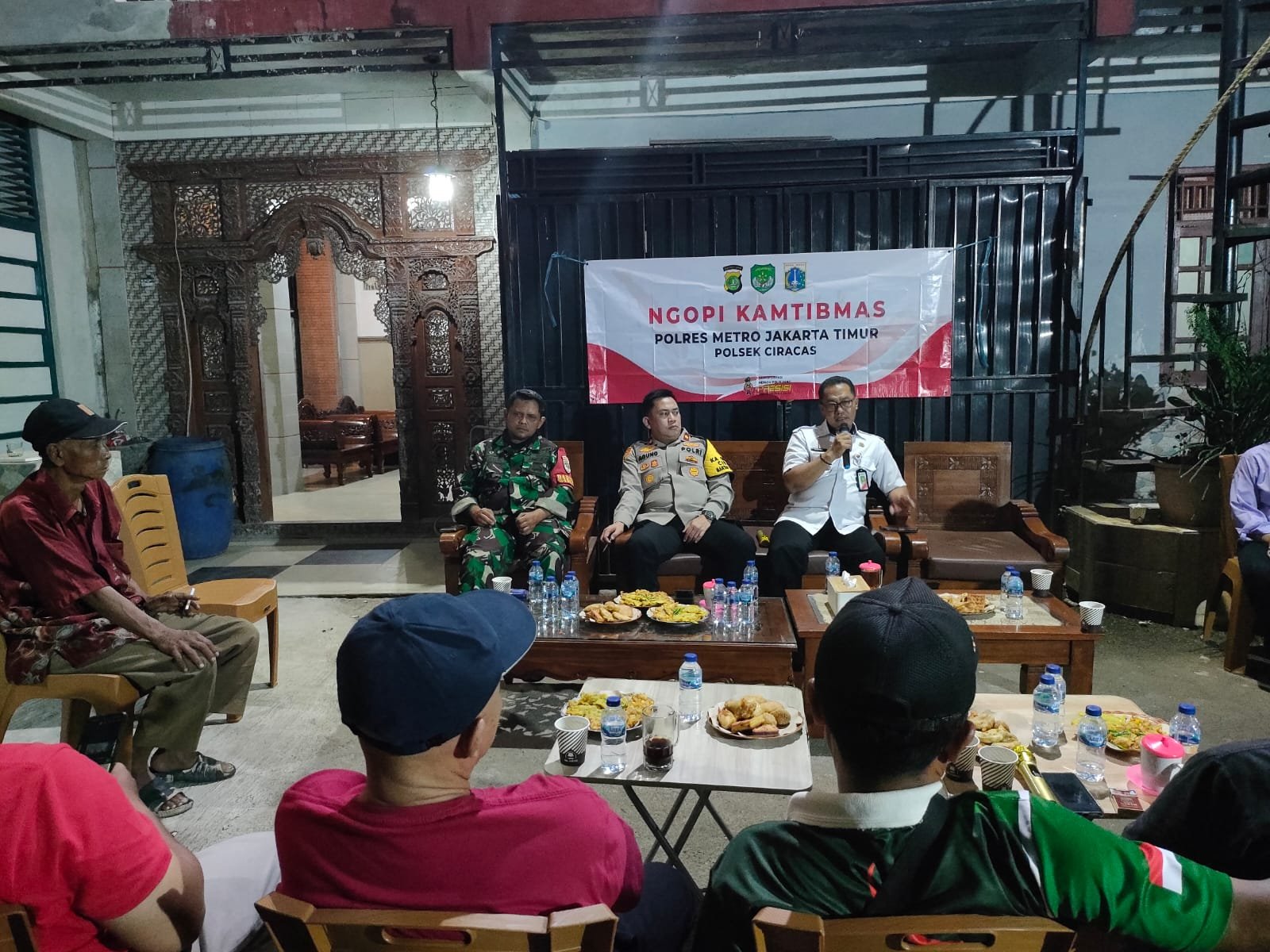 refubliknews.com, – Jakarta – Kapolsek Ciracas Kompol Agung Ardiyansyah, SH, MH, bersama dengan tiga pilar yang terdiri dari Lurah, Bhabinkamtibmas, dan Babinsa setempat, melaksanakan kegiatan “Ngopi Kamtibmas” di kediaman Ketua RT 12/01, Jalan Marjuki, Kel. Ciracas Kec. Ciracas Jakarta Timur. Rabu (18-09-2024) malam.