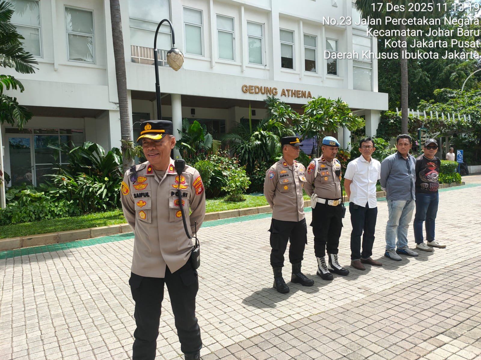 Jakarta Pusat — Jajaran Polsek Johar Baru melaksanakan apel pelayanan pengamanan aksi unjuk rasa di depan Kantor BPOM, Jalan Percetakan Negara No. 23, Kecamatan Johar Baru, Jakarta Pusat, Rabu (17/12/2025) pukul 11.13 WIB. Apel dipimpin langsung oleh Kapolsek Johar Baru Kompol Saiful Anwar selaku Kapam Objek, dengan melibatkan kekuatan pengamanan sebanyak 41 personel.