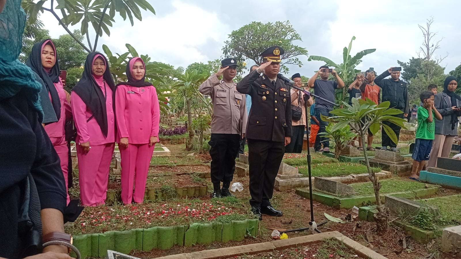 Turut hadir dalam rangkaian upacara yaitu Ibu Kapolsek Ketua Bhayangkari Cabang Kemayoran, Kapolsek, Wakapolsek, Perwira, Bintara, Bhayangkari dan personel Polsek Kemayoran , pihak keluarga almarhum serta masyarakat setempat.