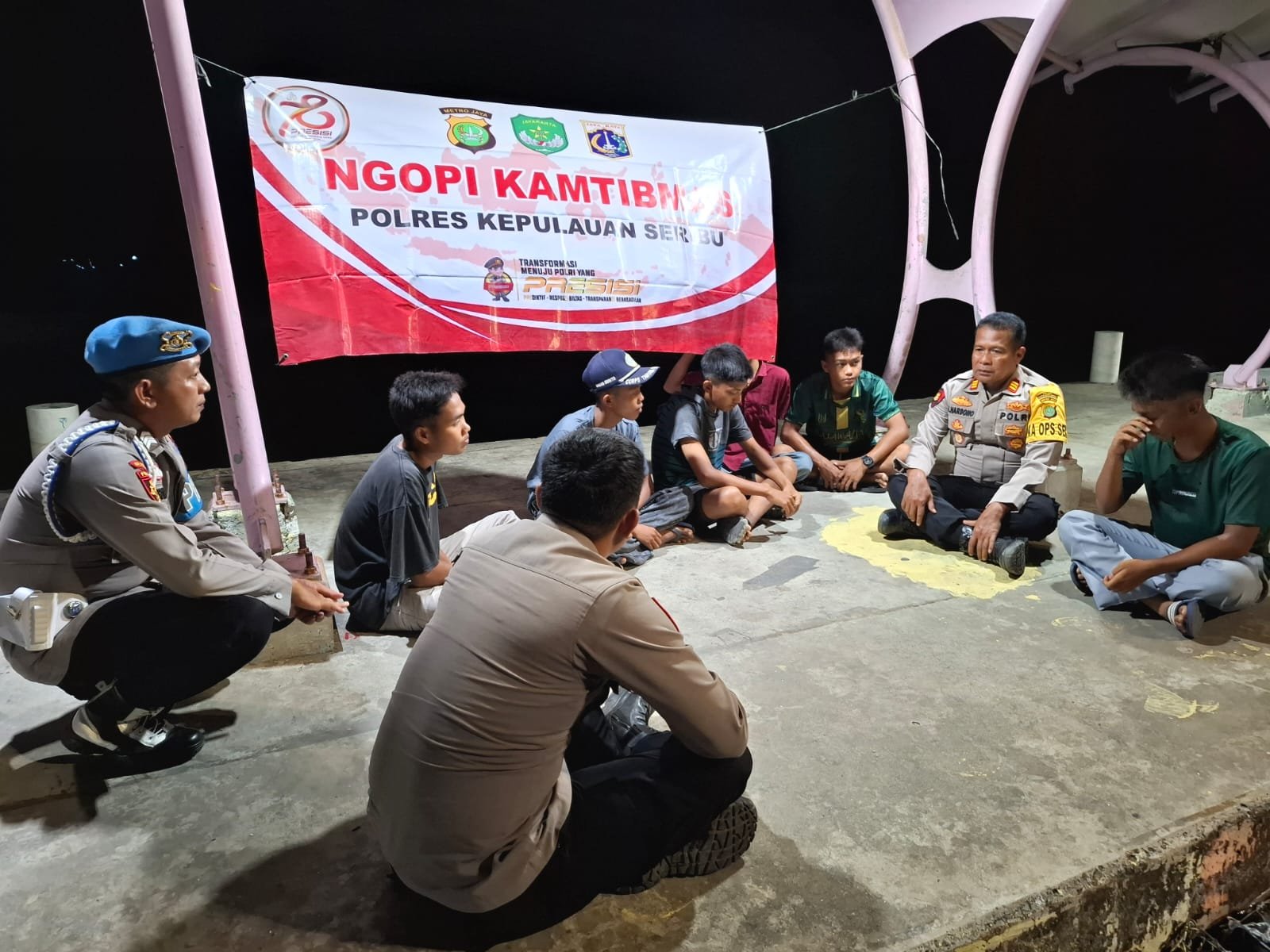 refubliknews.com, – Jakarta – Senin (28/10/2024), Kapolsek Kepulauan Seribu Selatan AKP Sanyata Harsono, S.H., bersama anggota Polsek Kepulauan Seribu Selatan melaksanakan kegiatan “Ngopi Kamtibmas” dengan para pelajar di Pulau Tidung, Kecamatan Kepulauan Seribu Selatan. Kegiatan ini bertujuan untuk mempererat hubungan antara polisi dan remaja serta memberikan penyuluhan terkait keamanan dan ketertiban masyarakat (Kamtibmas).