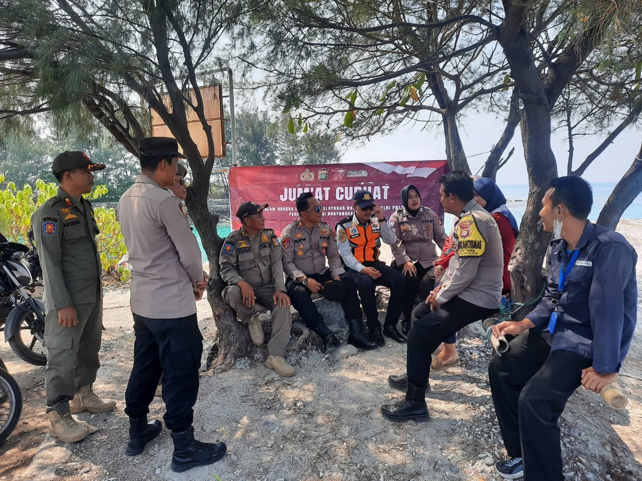 Jakarta – Kapolsek Kepulauan Seribu Selatan AKP Rahmat Suryaman beserta Bhabinkamtibmas Pulau Tidung, Polres Kepulauan Seribu, menggelar kegiatan “Jumat Curhat” dalam rangka memfasilitasi dialog antara pihak kepolisian, masyarakat, dan pemuda/pemudi di Area Jembatan Cinta, Rt 007/02 Pulau Tidung, Kelurahan Pulau Tidung, Kecamatan Kepulauan Seribu Selatan. Kegiatan ini bertujuan untuk mendengarkan keluhan masyarakat, mencatat permasalahan terkait kamtibmas, serta bersama-sama mencari solusi yang baik guna meningkatkan keamanan dan ketertiban di wilayah tersebut.