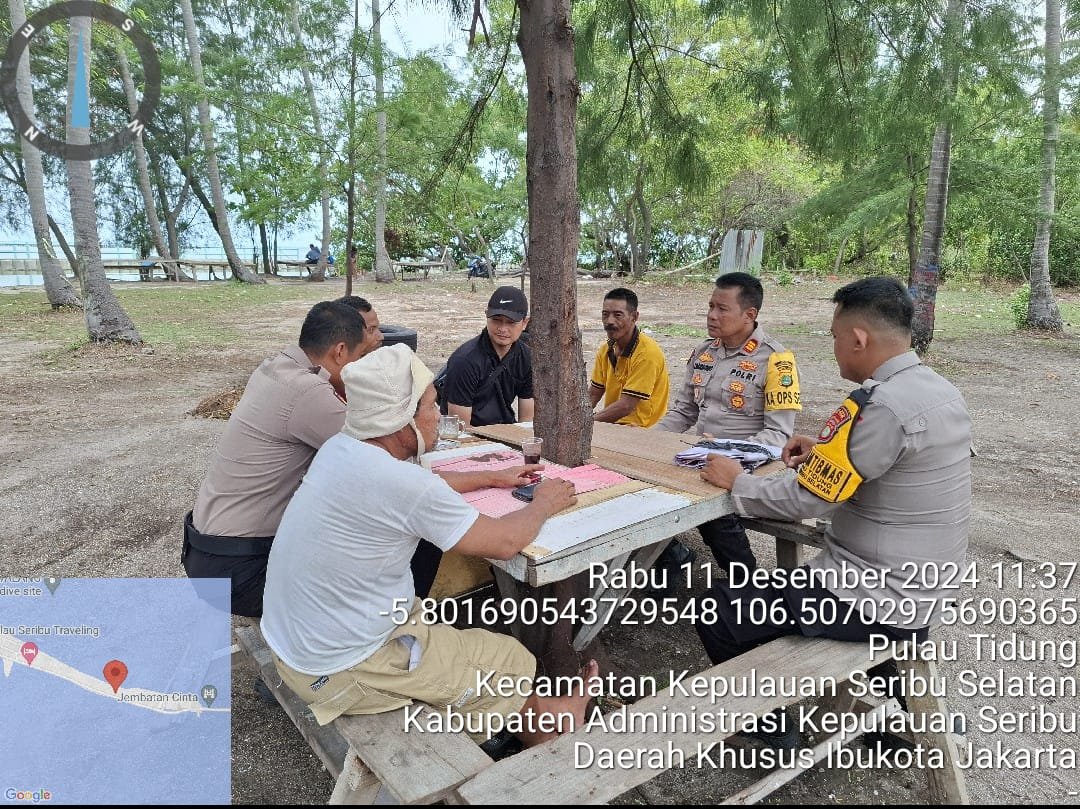 refubliknews.com,- Jakarta – Kapolsek Kepulauan Seribu Selatan, Polres Kepulauan Seribu, AKP Sanyata Harsono bersama Bhabinkamtibmas Pulau Tidung melaksanakan kegiatan Cooling System di Pulau Tidung, Kamis (12/12/2024). Kegiatan ini bertujuan untuk menjaga situasi yang kondusif pasca penyelenggaraan Pilkada DKI Jakarta 2024.