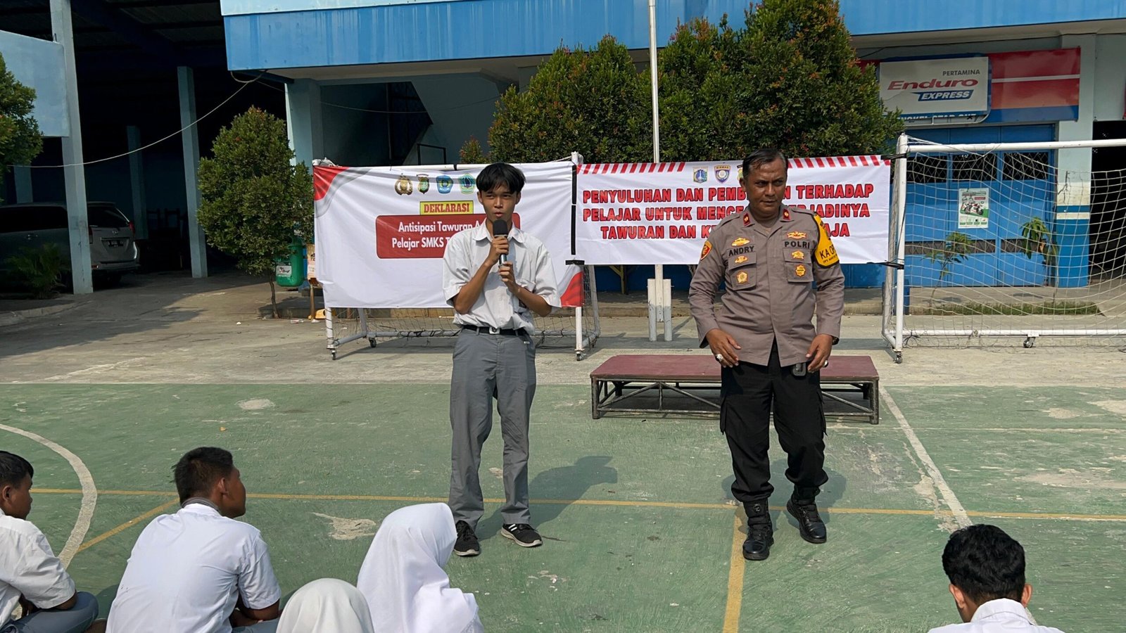 Tanpak hadir dalam kegiatan tersebut, Kanit Binmas AKP Slamet Radjiman, Panit Binmas AIPTU A. Rofik, Kepala Sekolah H. Andri Susanto, Wakil Kepala Sekolah (Bid Sarpras) Elang, Wakil Kepala Sekolah (Bid Kurikulum) Eni, Bidang BK Kusnadi, Bidang Kesiswaan Arum Damayanti.