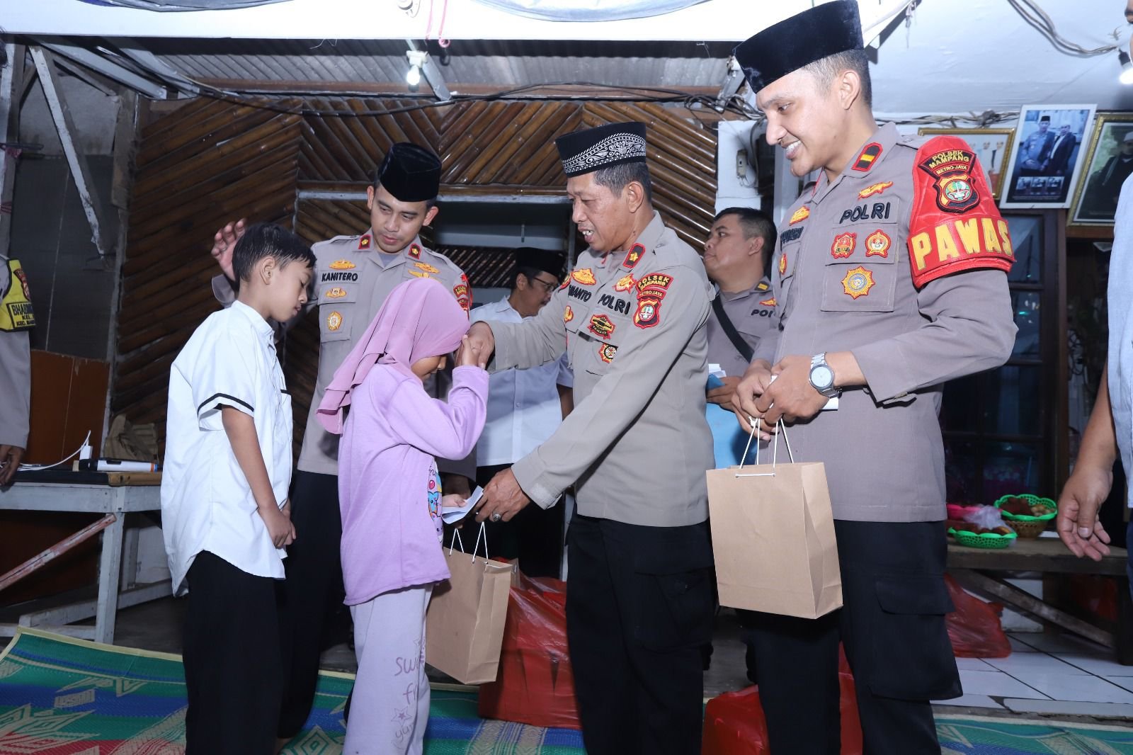 Kapolsek Mampang Prapatan Kompol David Y Kanitero beserta jajaran Polsek Mampang Prapatan menggelar buka puasa bersama (bukber) bersama warga slum area. Dalam kegiatan ini juga digelar bakti sosial kepada kaum dhuafa dan santunan anak yatim di Lapangan Pasar Jagal, Kelurahan Bangka, Mampang Prapatan, Jakarta Selatan (27/3/2024).