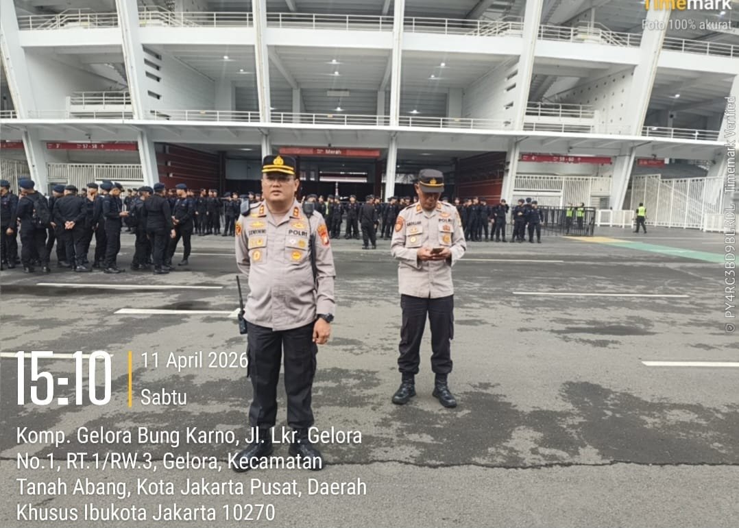 Dalam kegiatan tersebut, sebanyak 31 personel gabungan dari Polda Metro Jaya dan Polsek Metro Menteng diterjunkan guna memastikan jalannya pertandingan berlangsung aman dan kondusif. Penempatan personel dilakukan secara terukur di titik-titik strategis, mulai dari pintu masuk stadion, jalur antrean penonton, hingga area sekitar kawasan GBK yang berpotensi terjadi kepadatan.