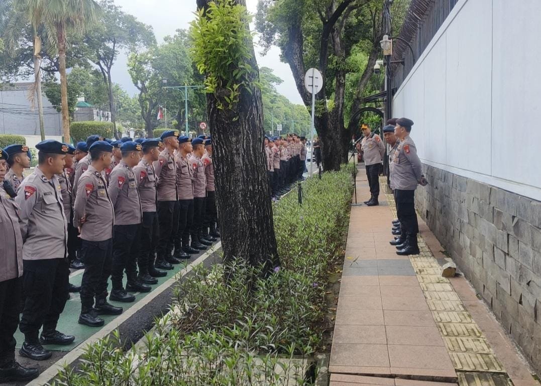 Pada hari ini, jajaran Polsek Metro Menteng menggelar apel pengamanan sebagai langkah antisipasi terhadap rencana aksi unjuk rasa yang akan digelar di depan kantor Kedutaan Besar Italia, Jalan Diponegoro, Menteng, Jakarta Pusat. Apel pengamanan ini dipimpin langsung oleh Kapolsek Metro Menteng, Kompol Rezha Rahandhi, S.E., S.I.K., M.M.Tr., M.H., serta didampingi oleh Wakapolsek Metro Menteng, Kompol II Sutasman, S.H., M.H.