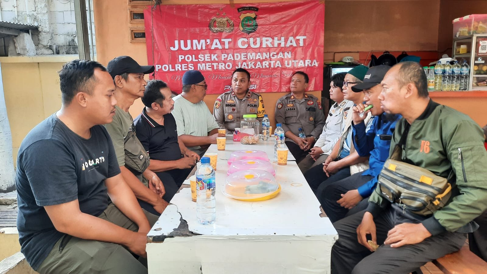 Kapolsek Pademangan, Kompol Binsar Hatorangan Sianturi, hadir bersama jajarannya, termasuk Waka Polsek AKP SB Sialagan, PS Kanit Intelkam Ipda Rasman, Kanit Binmas Iptu Gusti, serta Bhabinkamtibmas dari berbagai kelurahan.