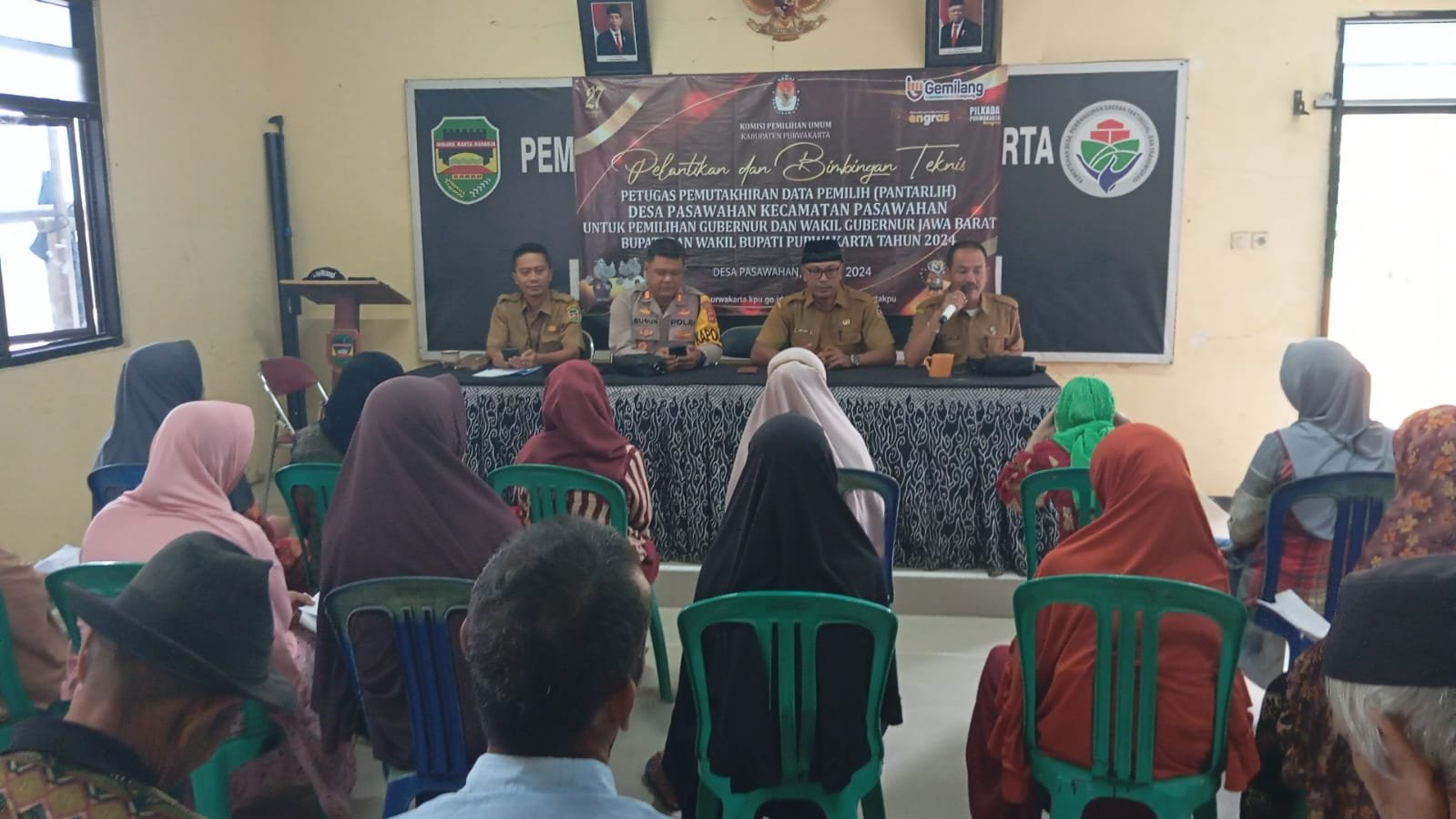 refubliknews.com, Purwakarta – Kapolsek Pasawahan,Polres Purwakarta,Polda Jawa Barat AKP Gugun Gunadi,S.H.M.M menghadiri kegiatan Pelantikan Petugas Pemutakhiran Data Pemilih (Pantarlih) dalam PILKADA Tahun 2024.Acara ini diselenggarakan oleh Panitia Pemilihan Kecamatan (PPK) Pasawahan,di Desa Pasawahan,Kecamatan Pasawahan,Kabupaten Purwakarta,pada hari Selasa,25 Juni 2024.