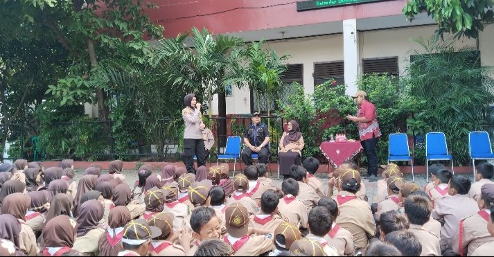 Kapolsek Pinang Iptu Diana Aldini Putri, S.Tr.K di dampingi Kanit Binmas Ipda Wahyu Budi Sutopo juga Bhabinkamtibmas Bripka Fitra Sahidin melaksanakan kegiatan Police Goes to School di Sekolah SDN Kunciran 4 pada Sabtu (28/09/24).