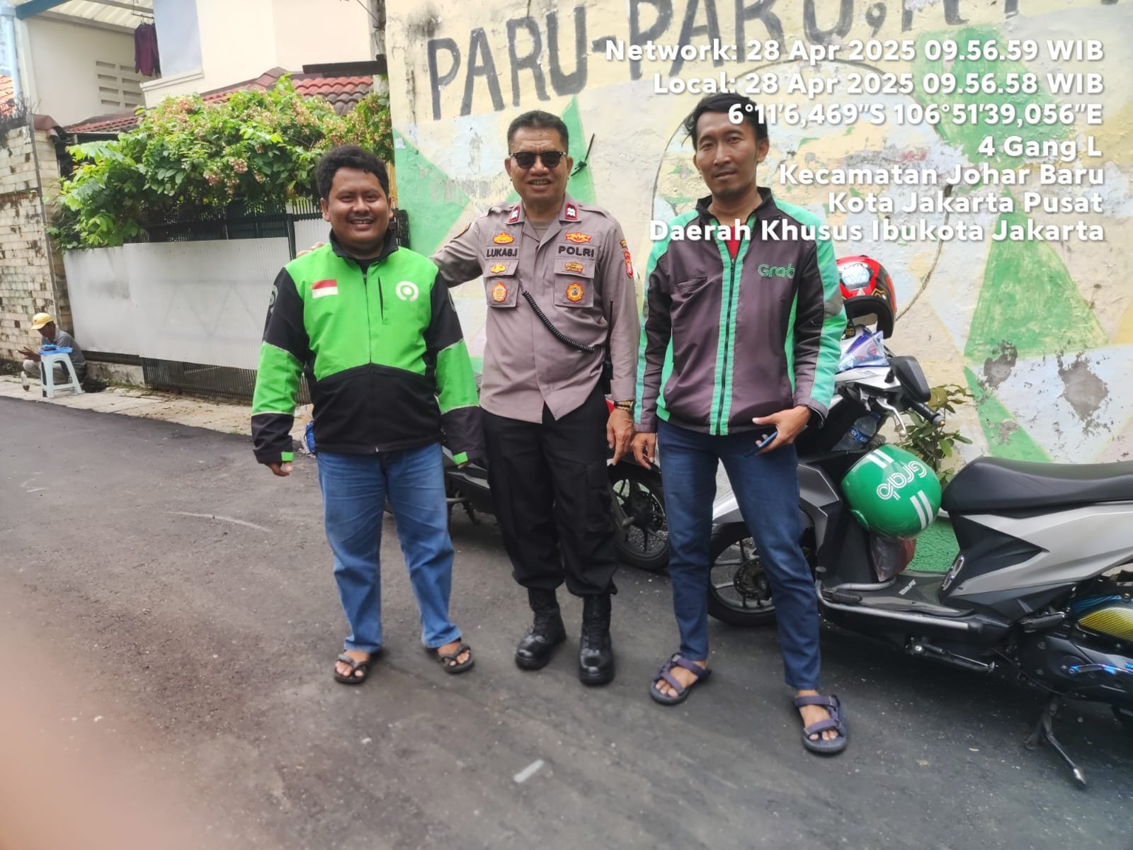 Dalam kesempatan ini, Aiptu Lukas Indrijanto mengunjungi pengemudi ojek online Grab, Saudara Iga dan Fadillah, untuk memberikan himbauan Kamtibmas. Selain itu, dilakukan pemantauan terhadap lingkungan sekitar untuk mengantisipasi terjadinya tindak pidana pencurian atau kejadian kriminal lainnya.