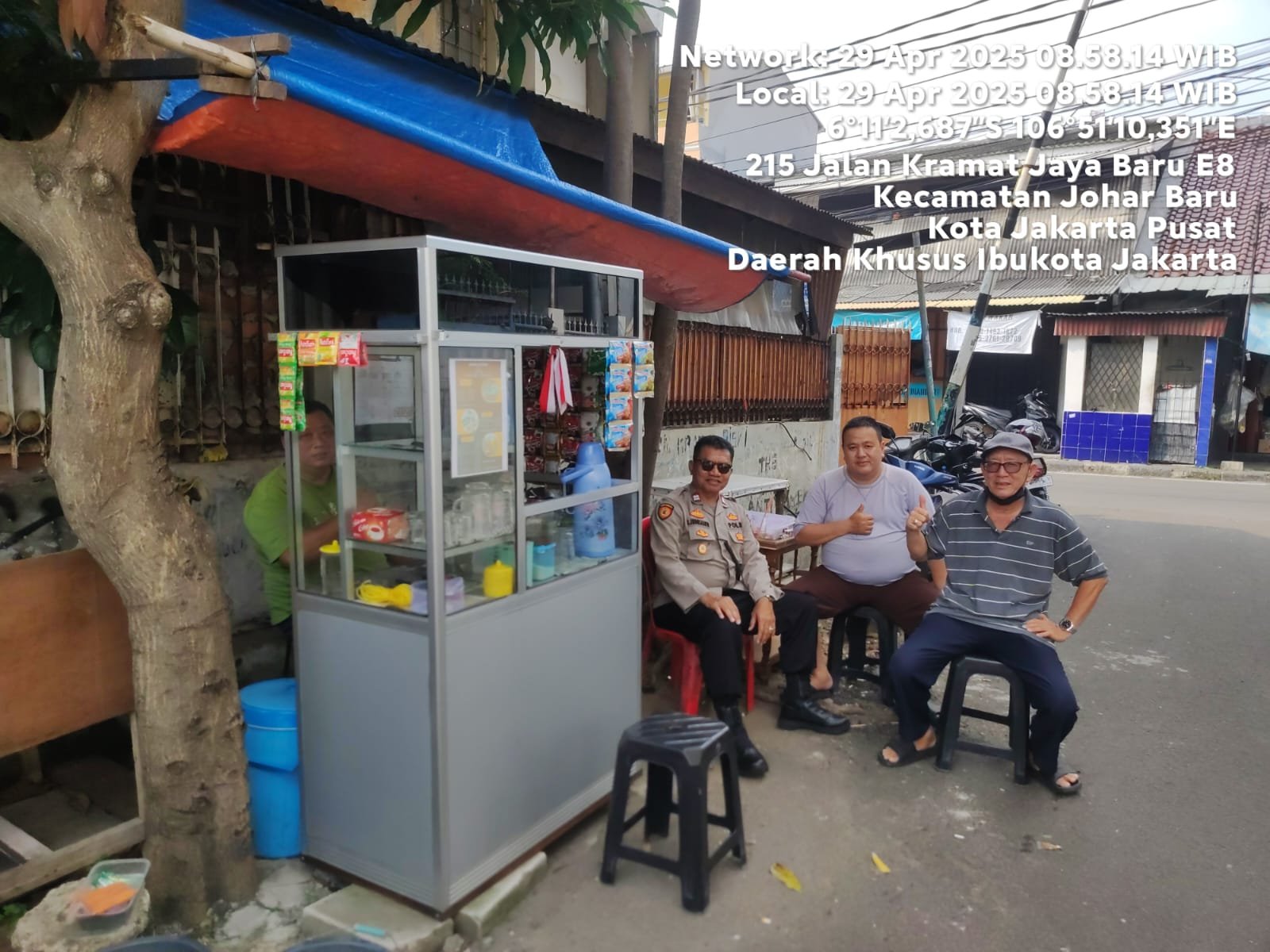 refubliknews.com, || Jakarta Pusat – Aiptu Lukas Indrijanto, Kapolsubsektor Kayu Awet Polsek Johar Baru, bersama dengan Bapak Hary dan rekan-rekannya, melaksanakan kegiatan sambang dialogis dan patroli di pemukiman warga yang terletak di Jalan Kramat Jaya Baru Blok E RT 06 RW 010, Kelurahan Johar Baru, Kecamatan Johar Baru, Jakarta Pusat.