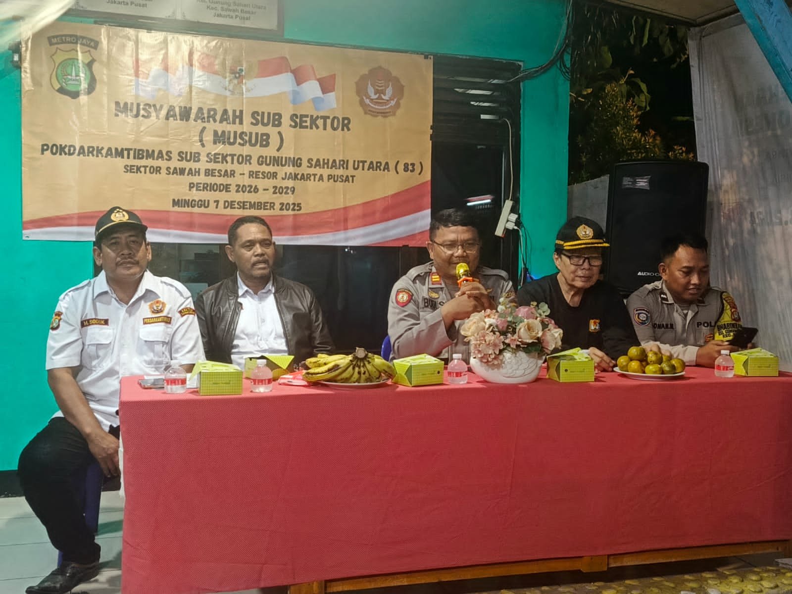 refubliknews.com, || Jakarta — Pembinaan dan arahan Kapolsubsektor Rajawali Iptu Budi Santoso bersama Bhabinkamtibmas Kelurahan Gunung Sahari Utara Aipda Adnan Munandar menjadi pembuka Musyawarah Peremajaan Pokdarkamtibmas Subsektor Gunung Sahari Utara Jajaran 83 Periode 2026–2029, Senin (08/12/2025) malam di Pos Sekretariat RW 02 Rajawali I, Sawah Besar, Jakarta Pusat. Dalam arahannya, Iptu Budi menekankan dasar hukum keberadaan Pokdarkamtibmas serta peran strategisnya dalam membantu pengelolaan keamanan lingkungan. Ia juga menyampaikan terima kasih kepada pengurus periode sebelumnya dan berharap peremajaan ini memperkuat sinergi warga dan Polri dalam menjaga situasi kondusif.