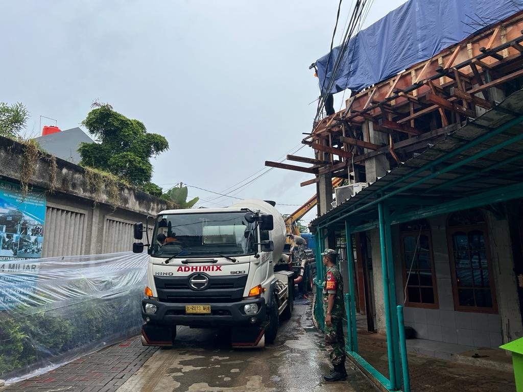 Kodam Jaya, Tangerang – Sejumlah anggota TNI dari Koramil 07/Pdk Aren, Kodim 0506/Tgr bersama Bakor dan masyarakat melaksanakan kegiatan kerja Bakti pengecoran dak Masjid Mujahidin Jl Mujahidin RT 03/05 Kel Perigi Baru Kec Pondok Aren. Kota Tangerang Selatan, Senin (13/02/2023).