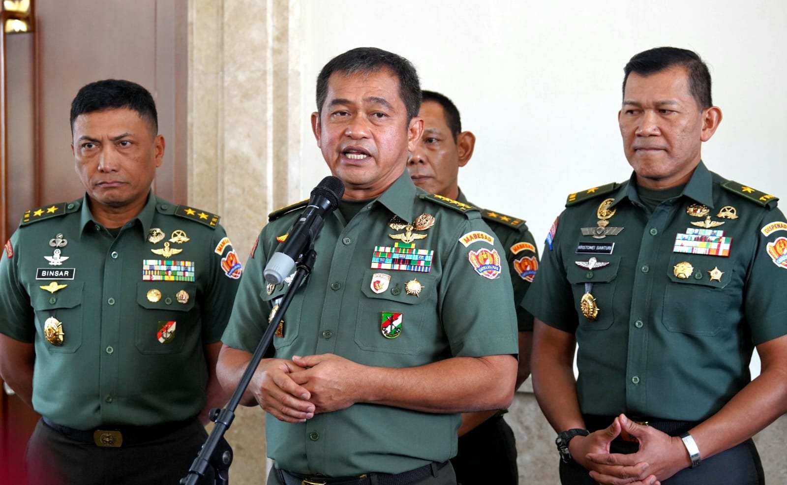 Hal tersebut kembali ditekankan Kepala Staf Angkatan Darat (Kasad) Jenderal TNI Maruli Simanjuntak, M.Sc., di depan para awak media, usai mengikuti perayaan Natal Bersama Keluarga Besar TNI AD se-Gartap 1/Jakarta, di Balai Kartini, Jakarta, Senin (5/2/2024).