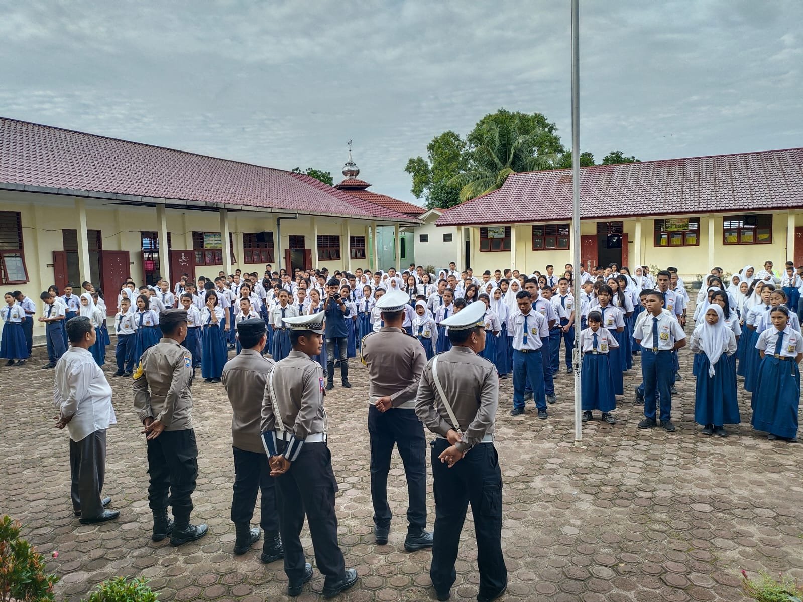 SIBOLGA – Personel Satuan Lalu Lintas Kepolisian Resor Sibolga (Satlantas Polres Sibolga), mensosialisasikan Pelaksanaan Operasi Zebra Toba 2024, kepada Para Guru dan Pelajar SMPN 4 Sibolga, Jalan Ketapang Kelurahan Sibolga Ilir Kecamatan Sibolga Utara Kota Sibolga, Rabu (16/10/2024). Sekira pukul 07.00 wib sampai dengan selesai.