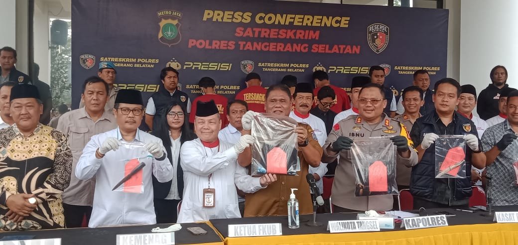 Hadir dalam kegiatan konferensi pers tersebut Wakapolres Tangsel Kompol Rizkyadi Saputro, S.I.K., Kasat Reskrim AKP Alvino Cahyadi, S.T.K., S.I.K., Danramil Serpong Mayor Kav. Sutart, Ketua FKUB Fachrudin Zuhri beserta pengurus FKUB Kota Tangsel, MUI Kota Tangsel KH. Hasan Mustofi, perwakilan NU, Pastor, Pendeta, Biksu, Kemenag Kota Tangsel dan Kesbangpol Kota Tangerang Selatan.