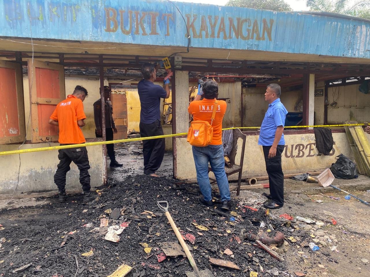Unit identifikasi Sat Reskrim Polres Tapanuli Tengah telah melakukan olah TKP dan mengamankan barang bukti berupa 1 (satu) Lembar Logam seng dan 2 M³ Bahan Bangunan Kayu Balok Hasil olah TKP diduga kebakaran diduga terjadi karena korsleting atau hubungan arus pendek dan tidak ada korban jiwa pada kejadian tersebut.