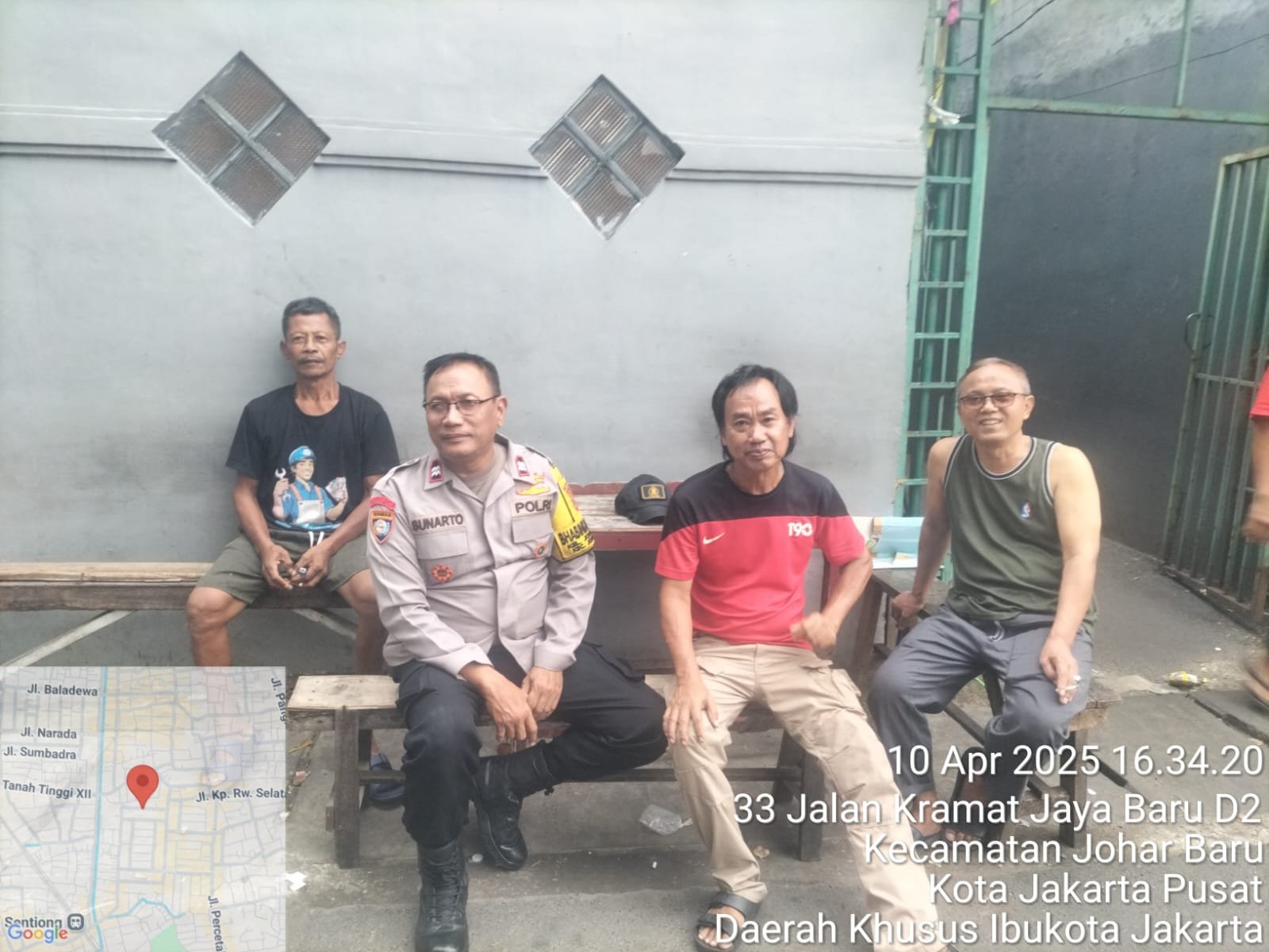 refubliknews.com, || Jakarta Pusat, 10 April 2025 – Dalam rangka menjaga keamanan dan ketertiban masyarakat, Kepolisian Sektor Johar Baru melaksanakan kegiatan patroli dialogis dan sambang warga pada Kamis malam, 10 April 2025, yang dimulai pukul 16.50 WIB di RW 02 Kelurahan Johar Baru, Kecamatan Johar Baru, Jakarta Pusat. Kegiatan ini dipimpin oleh Aiptu Sunarto, Bhabinkamtibmas Kelurahan Johar Baru, dengan tujuan untuk meningkatkan kerjasama antara pihak kepolisian dan masyarakat dalam menjaga situasi kamtibmas yang aman dan kondusif.