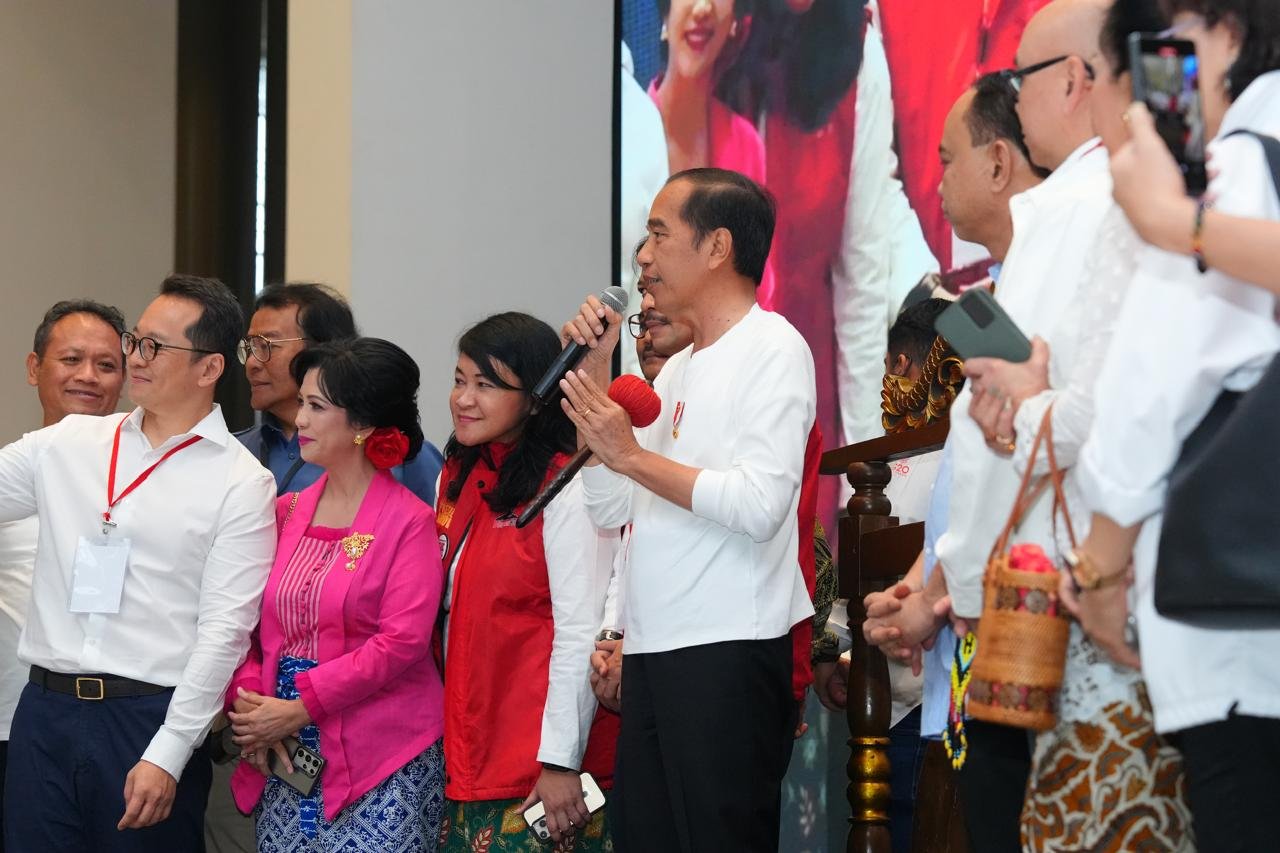Ketua Umum GK Center Kelik Wirawan terkejut saat Presiden Joko Widodo tiba di tengah perayaan acara HUT GK Center yang ke-12 dan satu dekade kepemimpinan Presiden di Ciputra Artpreneur, Mega Kuningan, Jakarta Selatan.