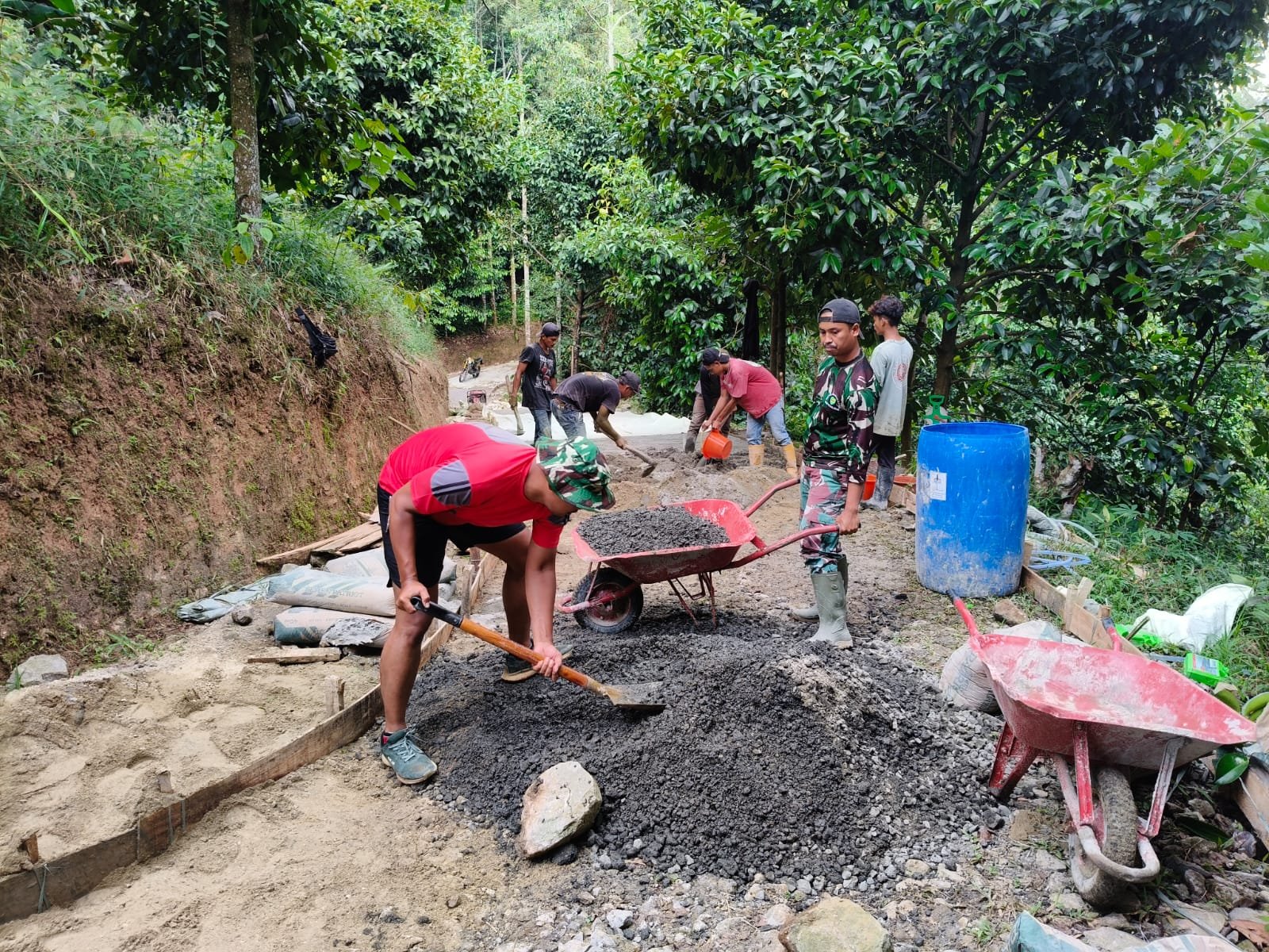 TNI dengan masyarakat semakin kompak dan semakin terjalin keakraban melalui TMMD ini, dan kebut pengecoran agar Idul Fitri 1446 H jalan ini sudah bisa dilalui oleh masyarakat.