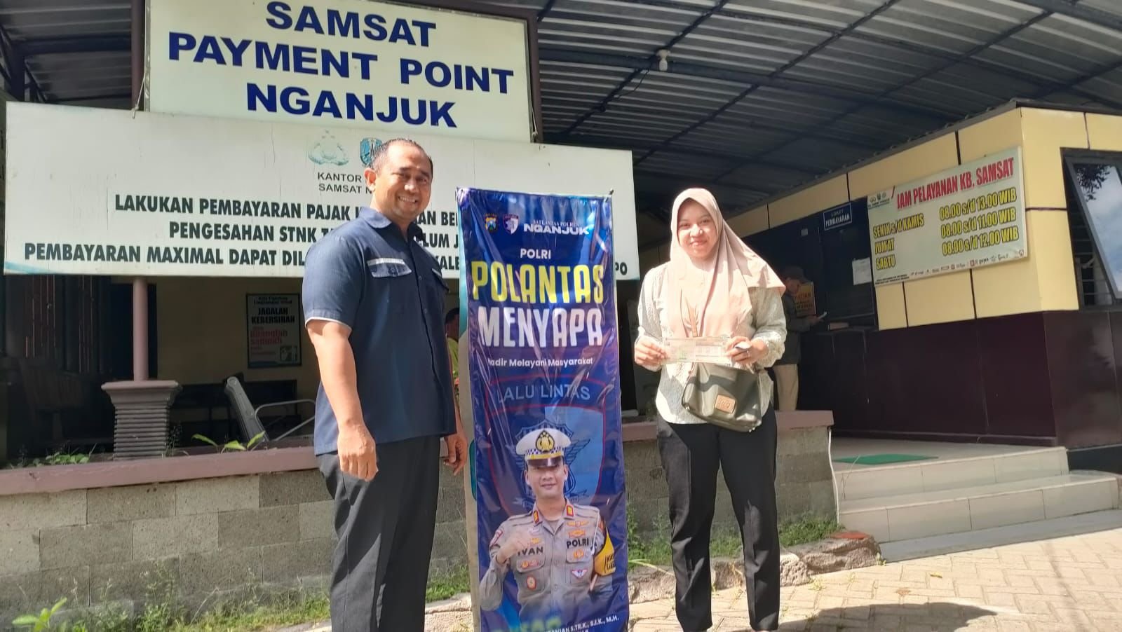 salah satu staff dari Samsat Nganjuk menginformasikan dengan adanya samsat keliling ini dengan harapan menjangkau masyarakat desa dan memudahkan dalam membayar pajak kendaraan bermotor tanpa harus ke samsat induk.