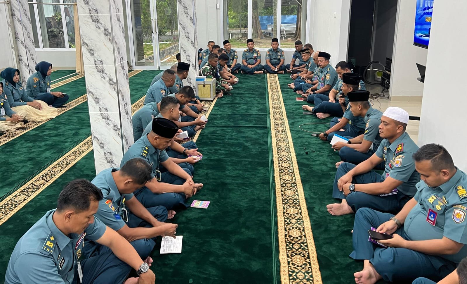 refubliknews.com, || TNI AL, Dumai- Bertempat di Musholla Al Firdaus Mako Lanal Dumai, Komandan Pangkalan TNI Angkatan Laut Dumai Kolonel Laut (P) Abdul Haris memimpin pelaksanaan do’a dan dzikir bersama dalam rangka memperingati Hari Bakti Hiu Kencana, Senin (21/04/2025).