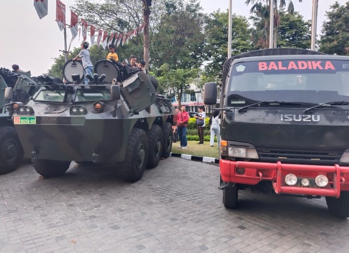 Pameran alutsista TNI di gelar untuk dalam rangka menyambut HUT RI ke 78 juga untuk mengedukasi masyarakat dan menumbuhkan rasa bela negara,selain itu pameran alutsista TNI juga memperkenalkan peralatan baik kendaraan tempur dan juga persenjataan agar masyarakat mengetahui.