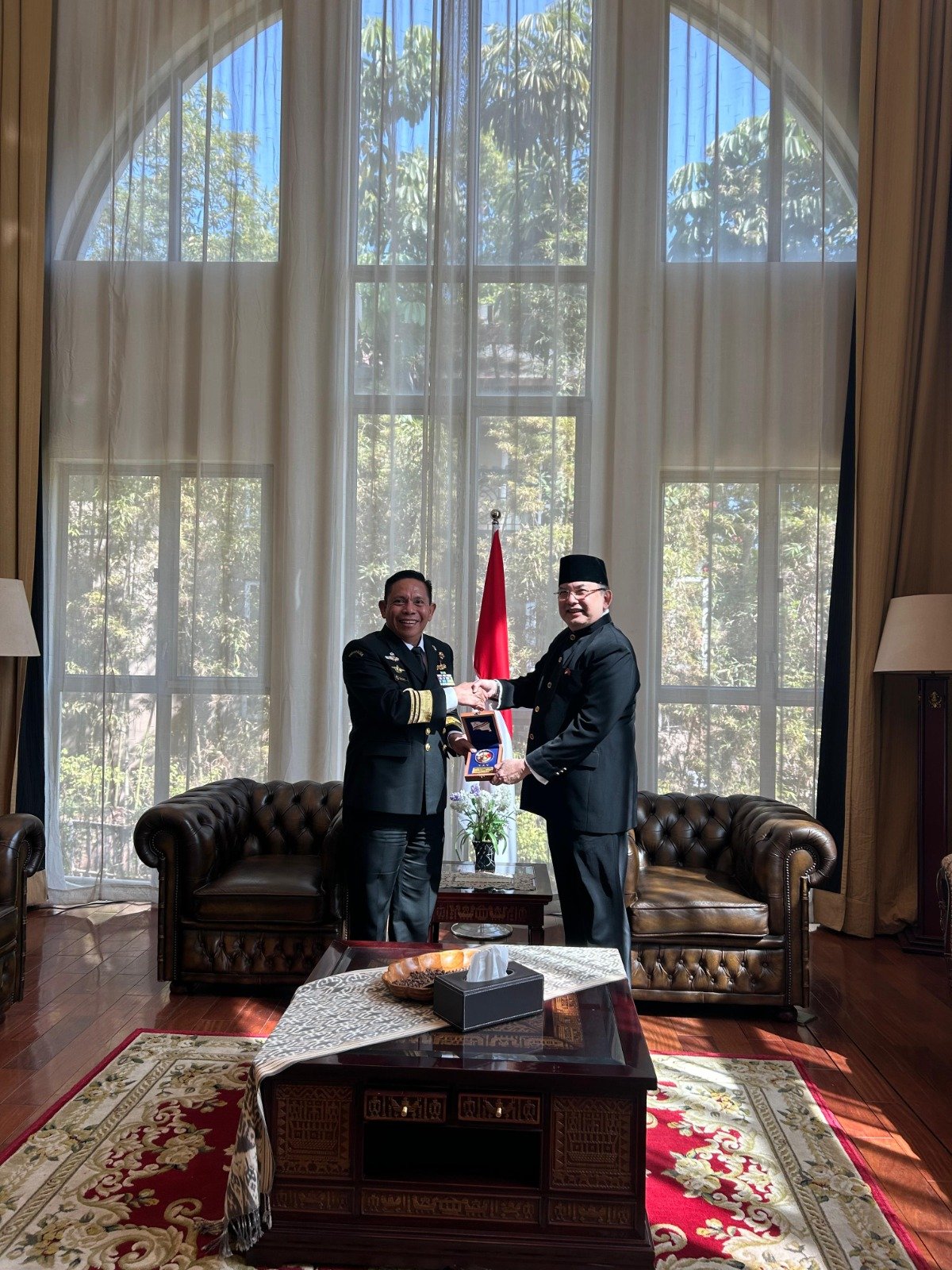 Dalam rangkaian kegiatan ini, Kepala Bakamla RI didampingi oleh Plt. Sestama Bakamla RI, Laksda TNI Samuel H. Kowaas, M.Sc., CSBA., Direktur Kerja Sama Bakamla RI, Laksma Bakamla Askari, P.S.C., S.I.Kom., M.Sc., M.A., serta Atase Udara dan staf KBRI Beijing.(Humas Bakamla RI)